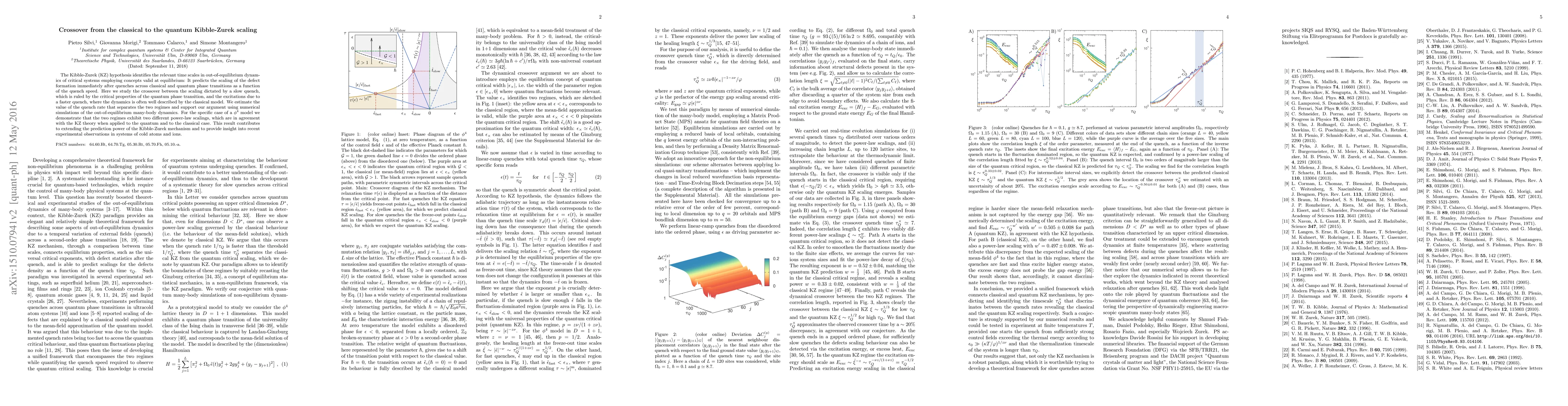 The Kibble-Zurek (KZ) hypothesis identifies the relevant time scales in out-of-equilibrium dynamics of critical systems employing concepts valid at equilibrium: It predicts the scaling of the defect formation immediately after quenches across classical and quantum phase transitions as a function of the quench speed. Here we study the crossover between the scaling dictated by a slow quench, which is ruled by the critical properties of the quantum phase transition, and the excitations due to a faster quench, where the dynamics is often well described by the classical model. We estimate the value of the quench rate that separates the two regimes and support our argument using numerical simulations of the out-of-equilibrium many-body dynamics. For the specific case of a $\phi^4$ model we demonstrate that the two regimes exhibit two different power-law scalings, which are in agreement with the KZ theory when applied to the quantum and to the classical case. This result contributes to extending the prediction power of the Kibble-Zurek mechanism and to provide insight into recent experimental observations in systems of cold atoms and ions.