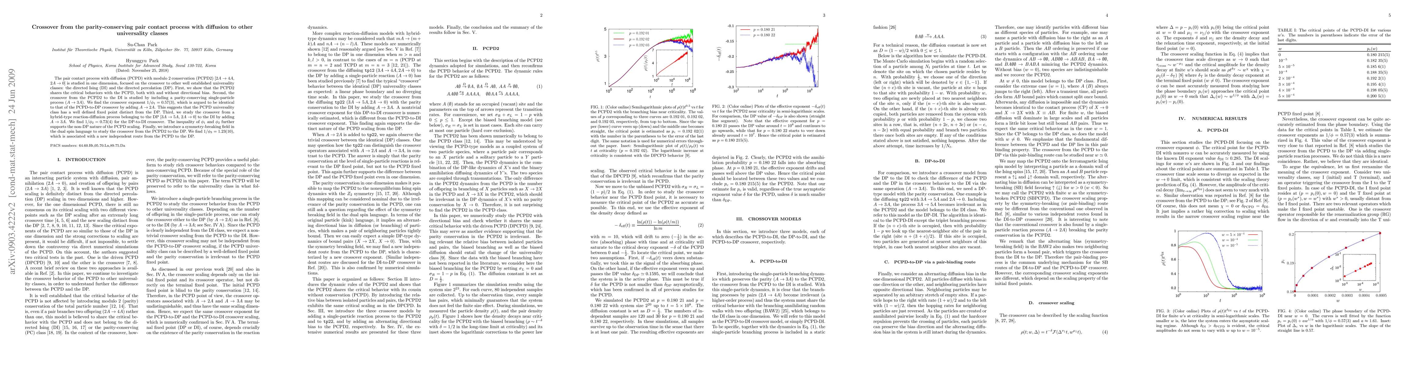 This paper investigates the crossover behaviors of the parity-conserving pair contact process with diffusion (\pcpdt) in one dimension, demonstrating its similarity to the pair contact process and identifying distinct crossover exponents to the directed Ising and directed percolation universality classes.