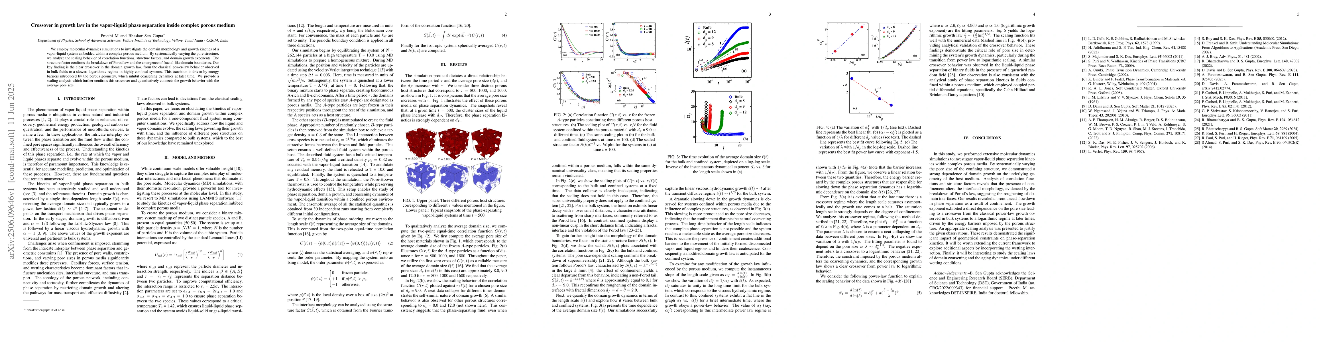 We employ molecular dynamics simulations to investigate the domain morphology and growth kinetics of a vapor-liquid system embedded within a complex porous medium. By systematically varying the pore structure, we analyze the scaling behavior of correlation functions, structure factors, and domain growth exponents. The structure factor confirms the breakdown of Porod law and the emergence of fractal-like domain boundaries. Our key finding is the clear crossover in the domain growth law, from the classical power-law behavior observed in bulk fluids to a slower, logarithmic regime in highly confined systems. This transition is driven by energy barriers introduced by the porous geometry, which inhibit coarsening dynamics at later time. We provide a scaling analysis which further confirms this crossover and quantitatively connects the growth behavior with the average pore size.