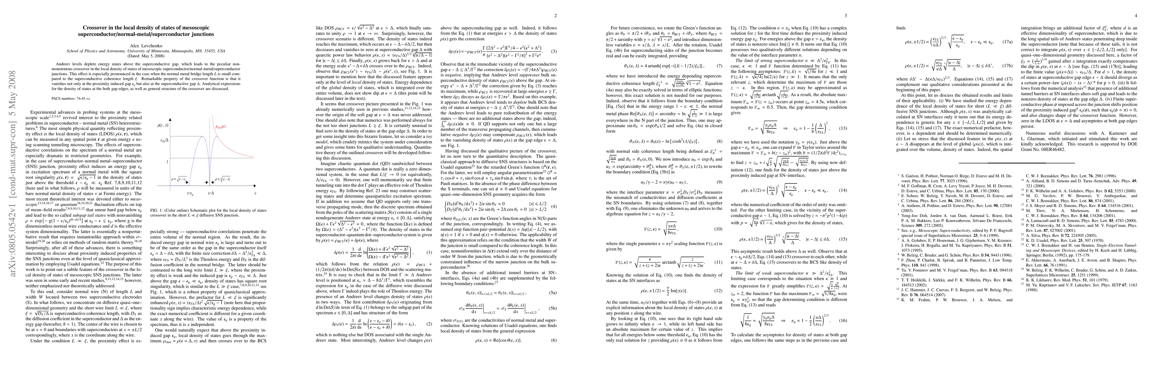 Andreev levels deplete energy states above the superconductive gap, which leads to the peculiar nonmonotonous crossover in the local density of states of mesoscopic superconductor/normal-metal/superconductor junctions. This effect is especially pronounced in the case when the normal metal bridge length is small compared to the superconductive coherence length. Remarkable property of the crossover function is that it vanishes not only at the proximity induced gap but also at the superconductive gap. Analytical expressions for the density of states at the both gap edges, as well as general structure of the crossover are discussed.