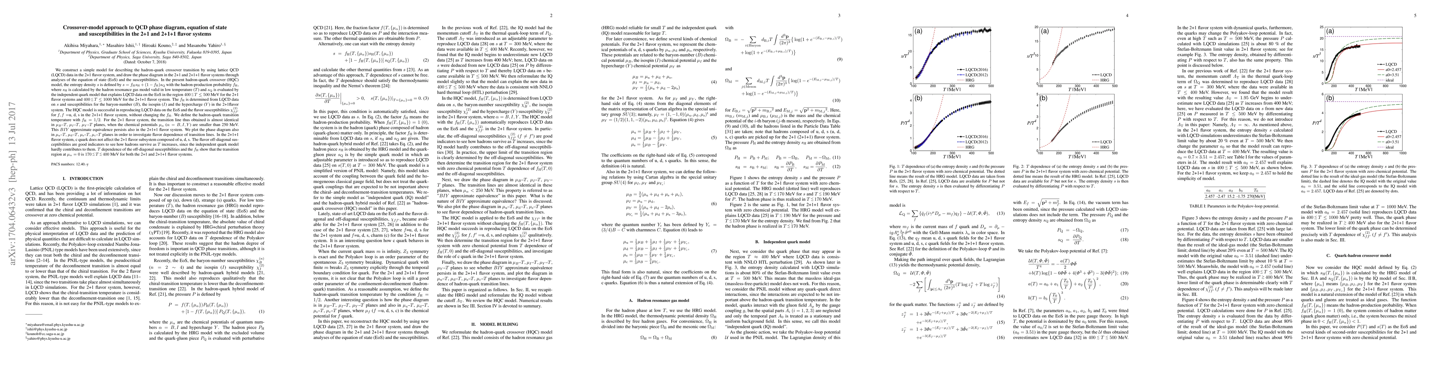 This paper constructs a crossover-model based on lattice QCD data to describe the hadron-quark transition in 2+1 and 2+1+1 flavor systems, successfully reproducing lattice QCD results for the equation of state and susceptibilities. The model reveals that the transition line is nearly identical across different planes defined by temperature and chemical potentials for baryon-number, isospin, and hypercharge, and shows that the c quark does not affect the u, d, s quark subsystem in the 2+1+1 flavor system.