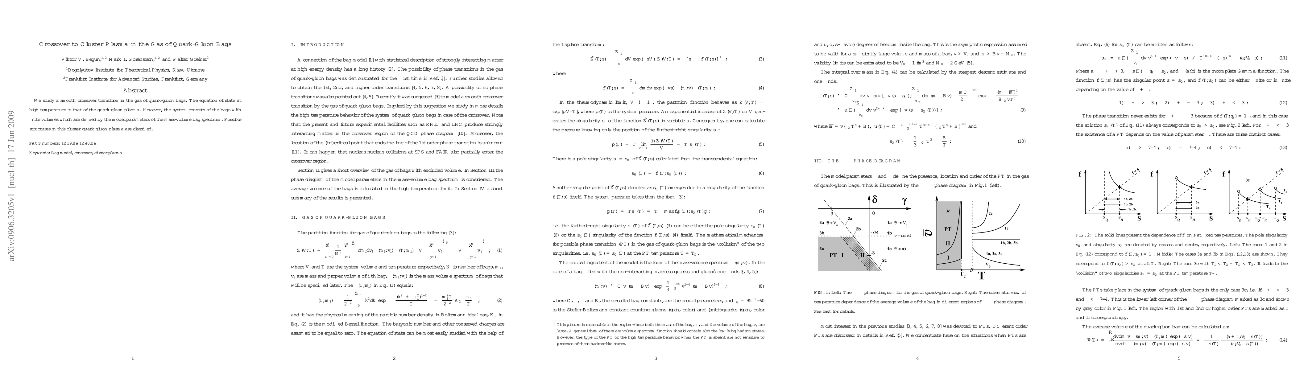 This paper investigates the smooth crossover transition from a quark-gluon plasma to a cluster plasma in quark-gluon bags, characterized by finite volumes defined by mass-volume bag spectrum parameters, and classifies possible structures within the cluster quark-gluon plasma.