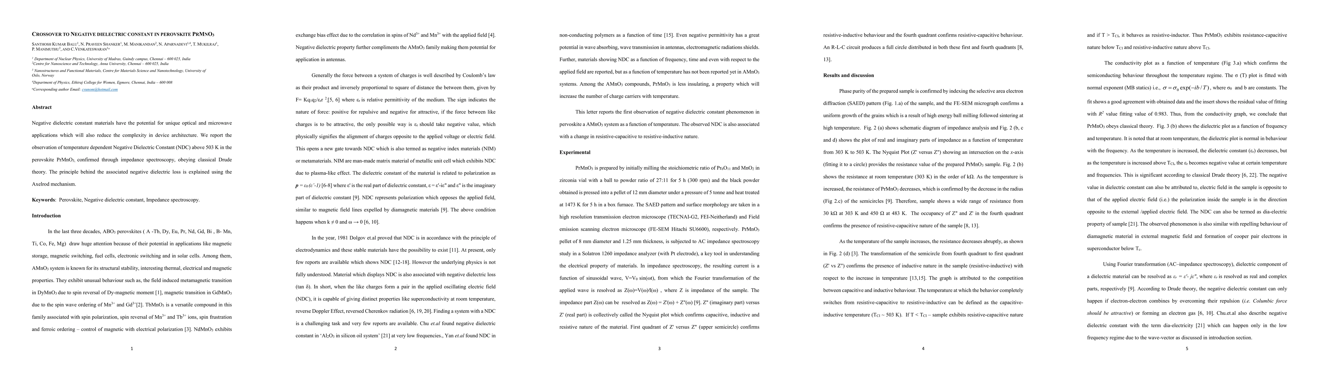 This study reports the temperature-dependent emergence of negative dielectric constant (NDC) in perovskite PrMnO3 above 503 K, confirmed via impedance spectroscopy, and explains the phenomenon using the Axelrod mechanism. This finding could pave the way for novel optical and microwave devices.