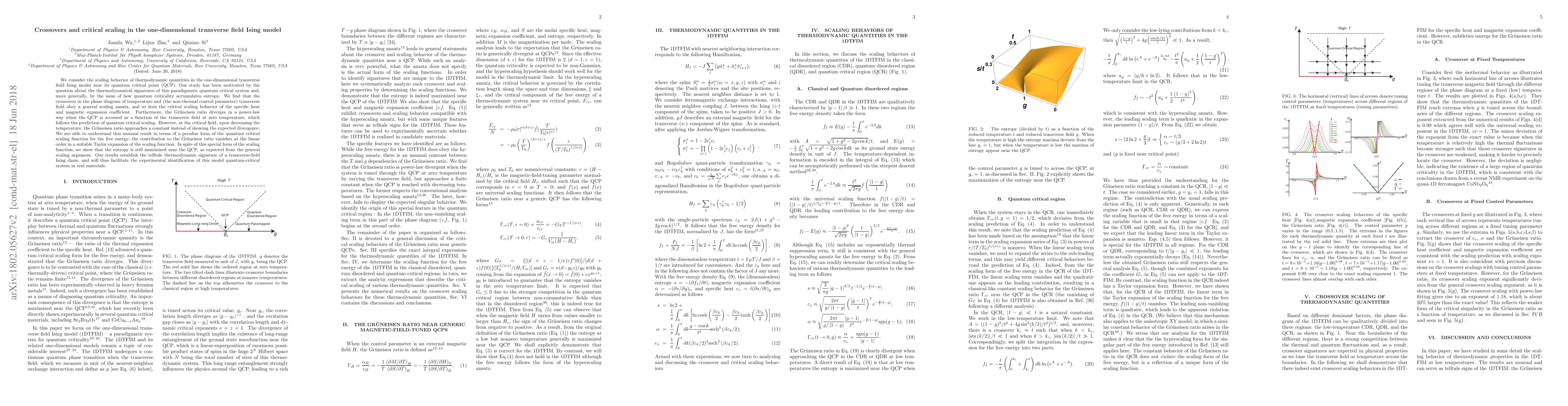 This paper investigates the scaling behavior of thermodynamic quantities in the one-dimensional transverse-field Ising model near its quantum critical point, revealing a general scaling ansatz for crossovers and critical scaling of specific heat and magnetic expansion coefficient. It finds an unusual behavior in the Gr\"uneisen ratio, which diverges but approaches a constant at the critical field, explained by a unique form of the quantum critical scaling function for the free energy.