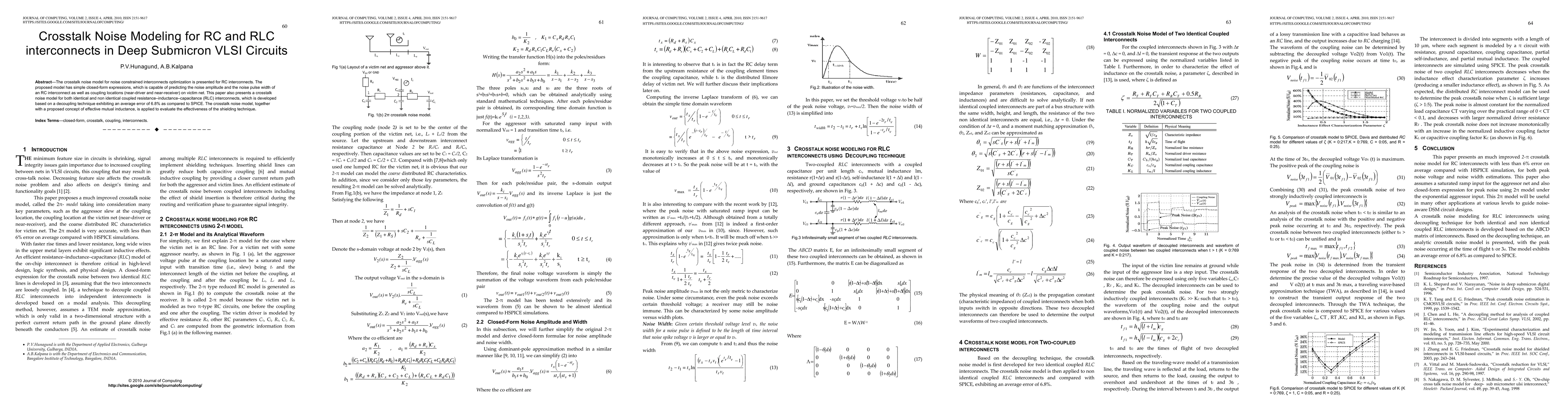 The crosstalk noise model for noise constrained interconnects optimization is presented for RC interconnects. The proposed model has simple closed-form expressions, which is capable of predicting the noise amplitude and the noise pulse width of an RC interconnect as well as coupling locations (near-driver and near-receiver) on victim net. This paper also presents a crosstalk noise model for both identical and non identical coupled resistance-inductance-capacitance (RLC) interconnects, which is developed based on a decoupling technique exhibiting an average error of 6.8% as compared to SPICE. The crosstalk noise model, together with a proposed concept of effective mutual inductance, is applied to evaluate the effectiveness of the shielding technique.