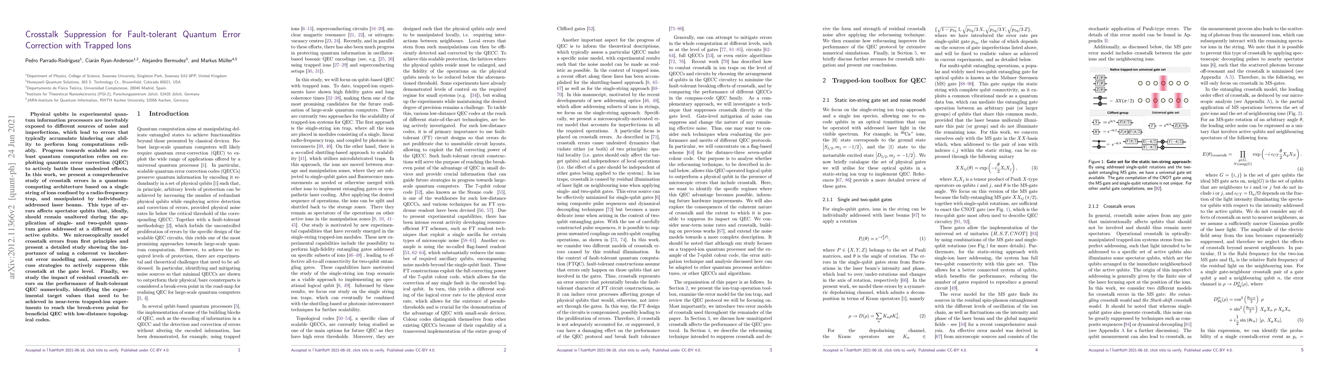 This paper investigates crosstalk errors in a trapped-ion quantum computing architecture and proposes strategies to suppress them, emphasizing the importance of coherent error modeling. It also numerically analyzes the impact of residual crosstalk on fault-tolerant quantum error correction performance, identifying necessary experimental targets for effective QEC.