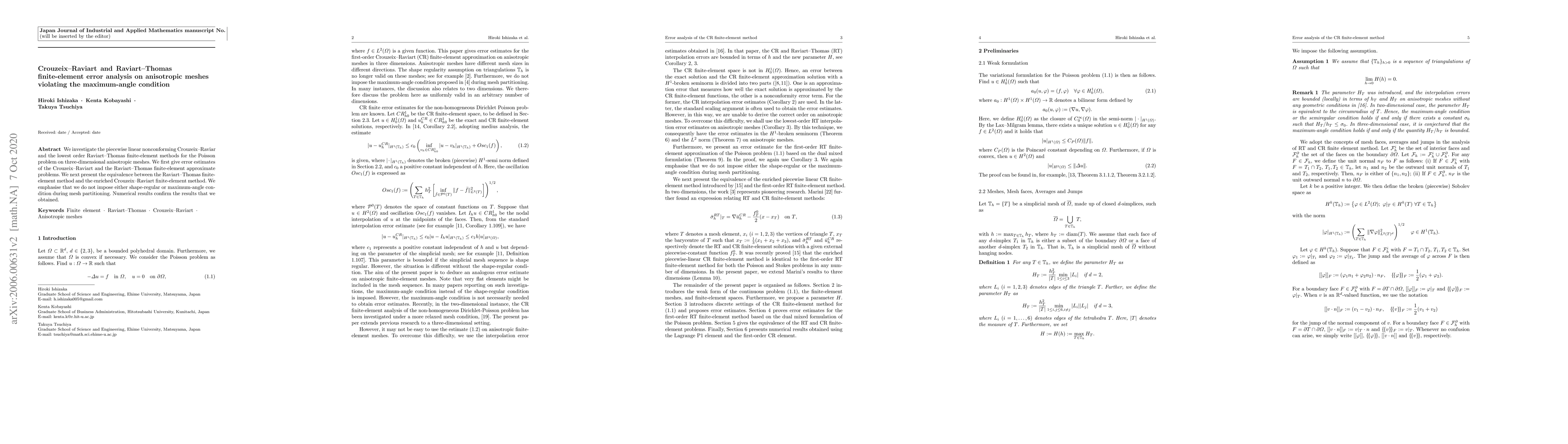 We investigate the piecewise linear nonconforming Crouzeix-Raviar and the lowest order Raviart-Thomas finite-element methods for the Poisson problem on three-dimensional anisotropic meshes. We first give error estimates of the Crouzeix-Raviart and the Raviart-Thomas finite-element approximate problems. We next present the equivalence between the Raviart-Thomas finite-element method and the enriched Crouzeix-Raviart finite-element method. We emphasise that we do not impose either shape-regular or maximum-angle condition during mesh partitioning. Numerical results confirm the results that we obtained.