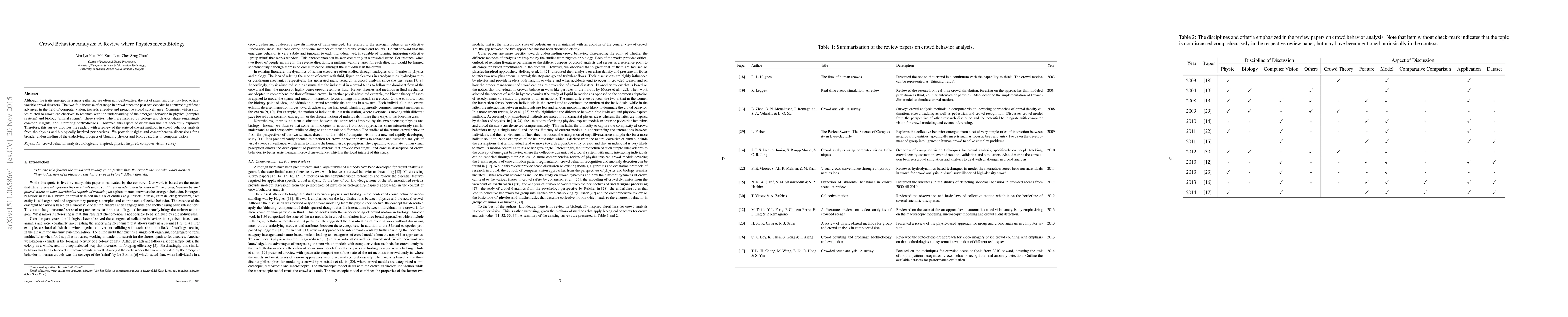This paper reviews state-of-the-art methods in crowd behavior analysis, highlighting the intersection of physics and biology in computer vision. It explores how insights from complex systems and animal swarms can enhance crowd surveillance and understanding of emergent crowd behaviors.