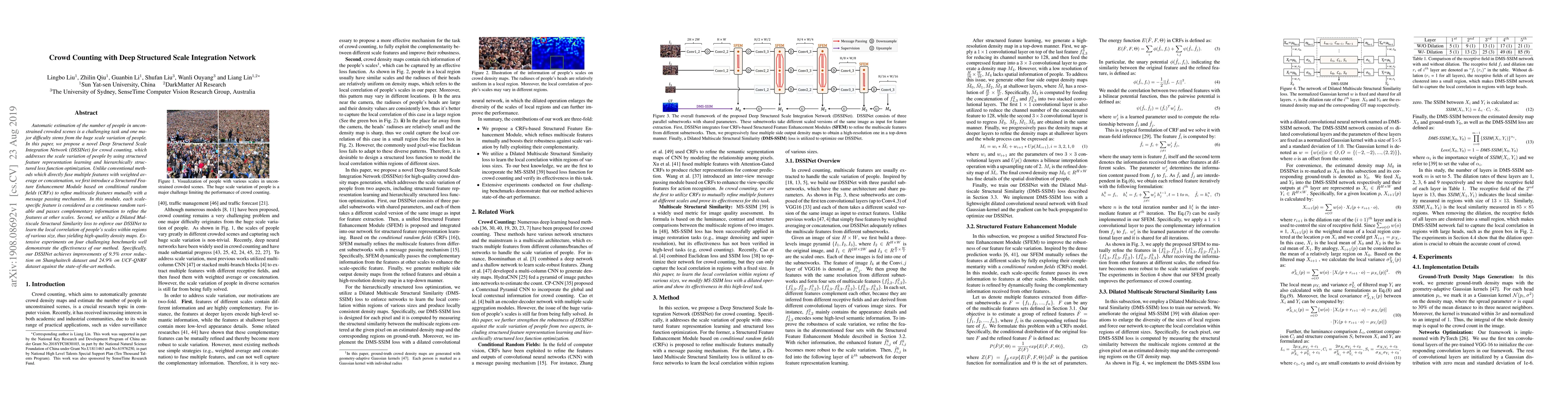 Automatic estimation of the number of people in unconstrained crowded scenes is a challenging task and one major difficulty stems from the huge scale variation of people. In this paper, we propose a novel Deep Structured Scale Integration Network (DSSINet) for crowd counting, which addresses the scale variation of people by using structured feature representation learning and hierarchically structured loss function optimization. Unlike conventional methods which directly fuse multiple features with weighted average or concatenation, we first introduce a Structured Feature Enhancement Module based on conditional random fields (CRFs) to refine multiscale features mutually with a message passing mechanism. In this module, each scale-specific feature is considered as a continuous random variable and passes complementary information to refine the features at other scales. Second, we utilize a Dilated Multiscale Structural Similarity loss to enforce our DSSINet to learn the local correlation of people's scales within regions of various size, thus yielding high-quality density maps. Extensive experiments on four challenging benchmarks well demonstrate the effectiveness of our method. Specifically, our DSSINet achieves improvements of 9.5% error reduction on Shanghaitech dataset and 24.9% on UCF-QNRF dataset against the state-of-the-art methods.
