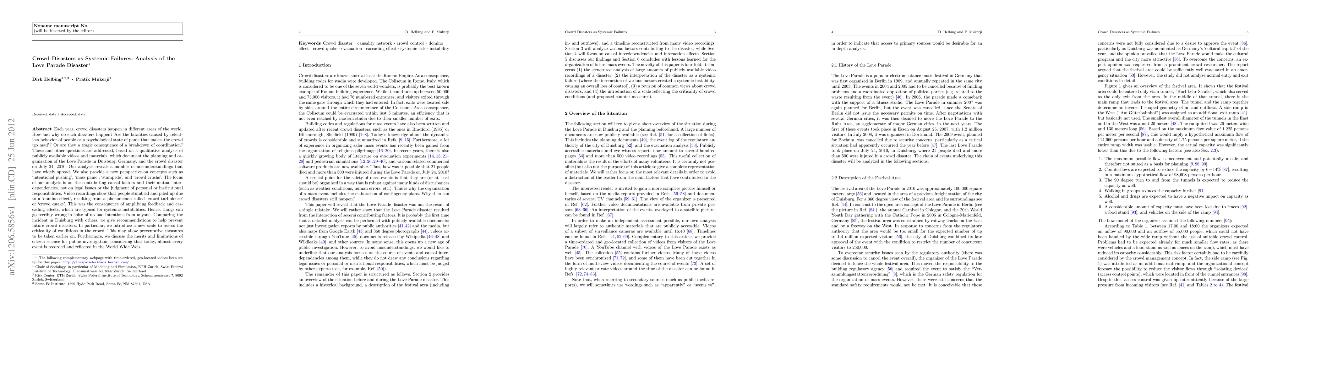 This paper analyzes the 2010 Love Parade crowd disaster in Duisburg, Germany, attributing it to systemic failures rather than panic or intentional pushing. It introduces "crowd turbulence" as a key factor, emphasizing cascading effects and systemic instabilities as primary causes.