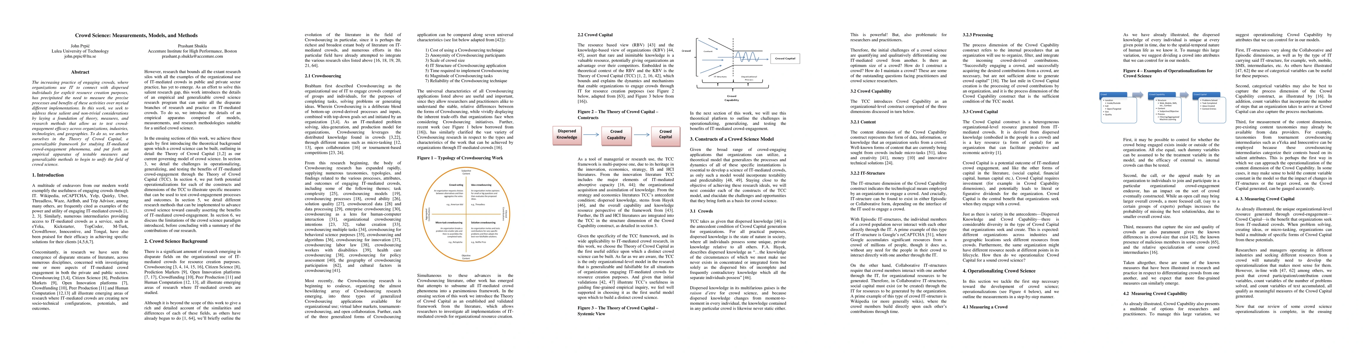 This paper establishes a theoretical framework, the Theory of Crowd Capital, to measure and analyze the efficacy of crowd-engagement initiatives across various sectors. It introduces a set of empirical measures and research methods to unify and advance the field of crowd science.