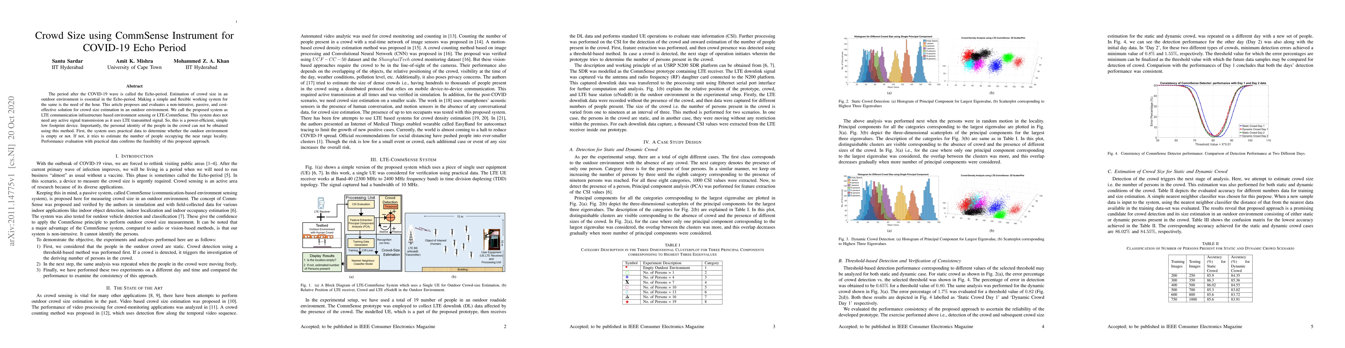 This paper proposes a cost-effective, non-intrusive crowd size estimation system called LTE-CommSense for the Echo-period after a COVID-19 wave, utilizing passive LTE signals without requiring active signal transmission, thus ensuring power efficiency and privacy. The system's performance is validated using practical data, confirming its feasibility for estimating crowd sizes in outdoor environments.