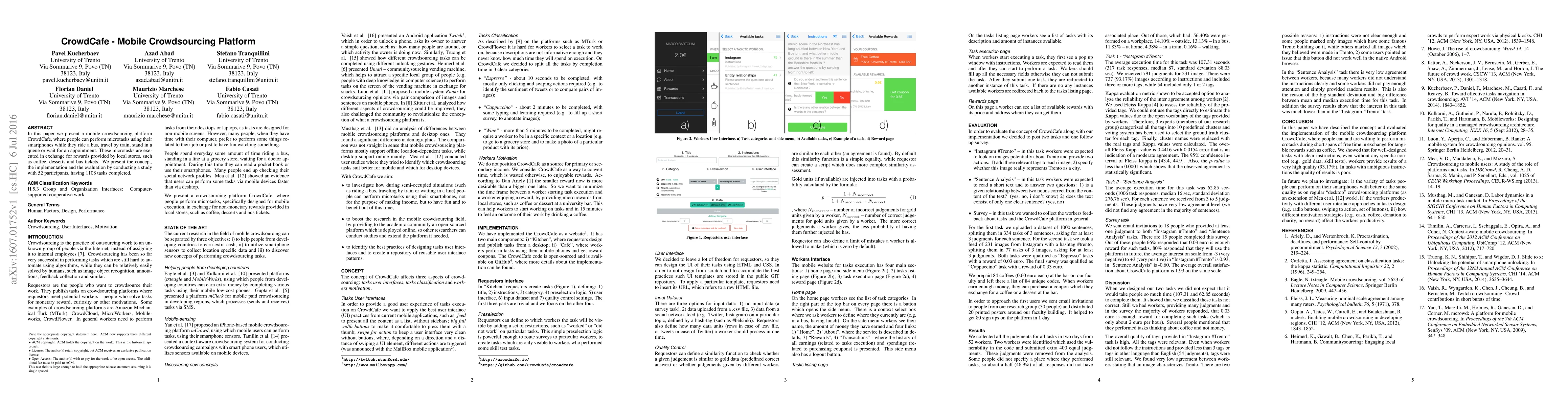 A mobile crowdsourcing platform called CrowdCafe was developed, where users complete microtasks for rewards while commuting, with 52 participants completing 1108 tasks in a study.