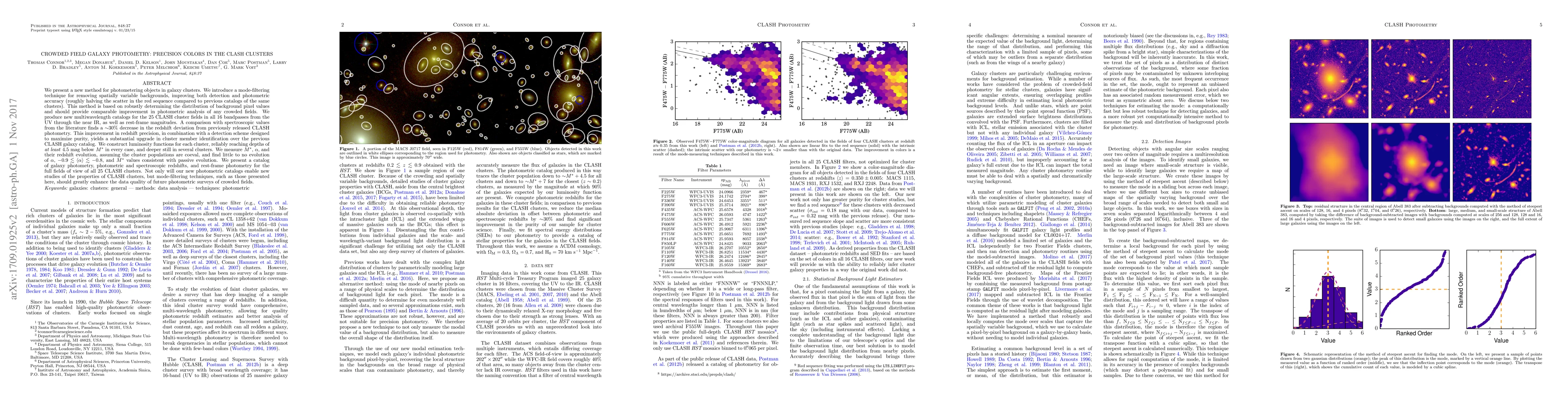 This paper introduces a mode-filtering technique to improve galaxy photometry in crowded cluster fields, significantly reducing scatter and redshift deviation. The new method, applied to 25 CLASH clusters, enhances cluster member identification and provides deeper luminosity functions, revealing little evolution in cluster properties.