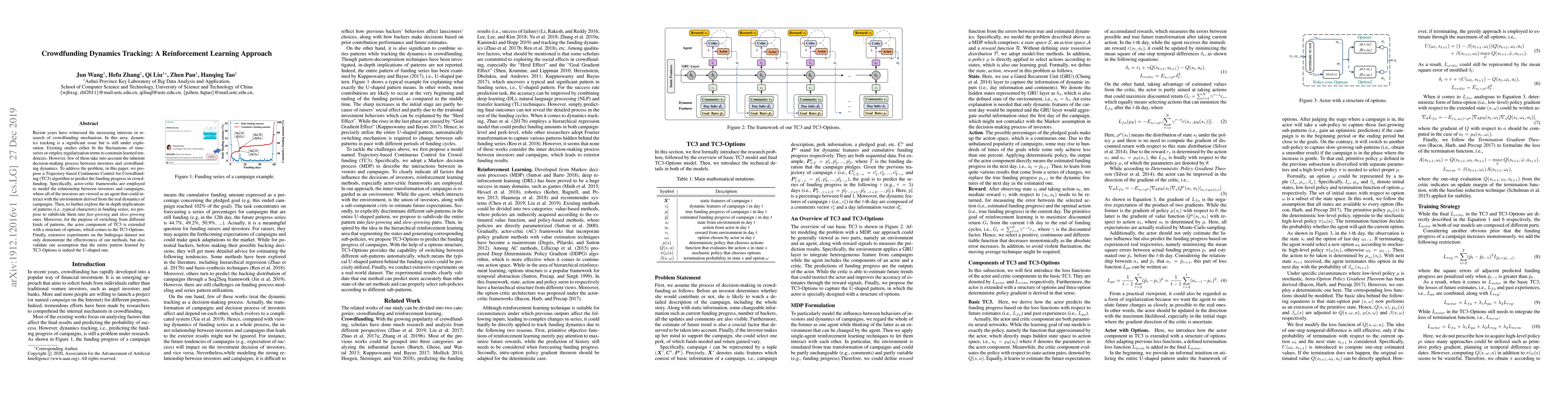 Recent years have witnessed the increasing interests in research of crowdfunding mechanism. In this area, dynamics tracking is a significant issue but is still under exploration. Existing studies either fit the fluctuations of time-series or employ regularization terms to constrain learned tendencies. However, few of them take into account the inherent decision-making process between investors and crowdfunding dynamics. To address the problem, in this paper, we propose a Trajectory-based Continuous Control for Crowdfunding (TC3) algorithm to predict the funding progress in crowdfunding. Specifically, actor-critic frameworks are employed to model the relationship between investors and campaigns, where all of the investors are viewed as an agent that could interact with the environment derived from the real dynamics of campaigns. Then, to further explore the in-depth implications of patterns (i.e., typical characters) in funding series, we propose to subdivide them into $\textit{fast-growing}$ and $\textit{slow-growing}$ ones. Moreover, for the purpose of switching from different kinds of patterns, the actor component of TC3 is extended with a structure of options, which comes to the TC3-Options. Finally, extensive experiments on the Indiegogo dataset not only demonstrate the effectiveness of our methods, but also validate our assumption that the entire pattern learned by TC3-Options is indeed the U-shaped one.