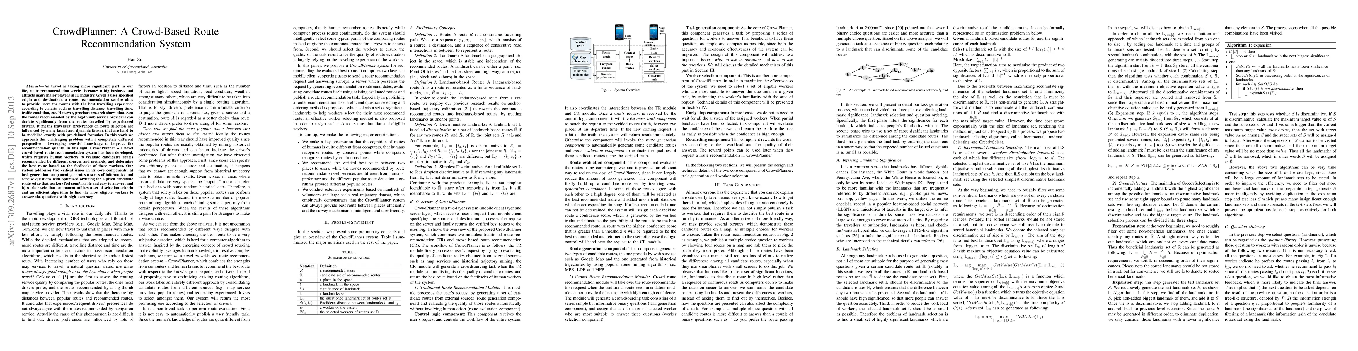 CrowdPlanner -- a novel crowd-based route recommendation system has been developed, which requests human workers to evaluate candidates routes recommended by different sources and methods, and determine the best route based on the feedbacks of these workers. Our system addresses two critical issues in its core components: a) task generation component generates a series of informative and concise questions with optimized ordering for a given candidate route set so that workers feel comfortable and easy to answer; and b) worker selection component utilizes a set of selection criteria and an efficient algorithm to find the most eligible workers to answer the questions with high accuracy.
