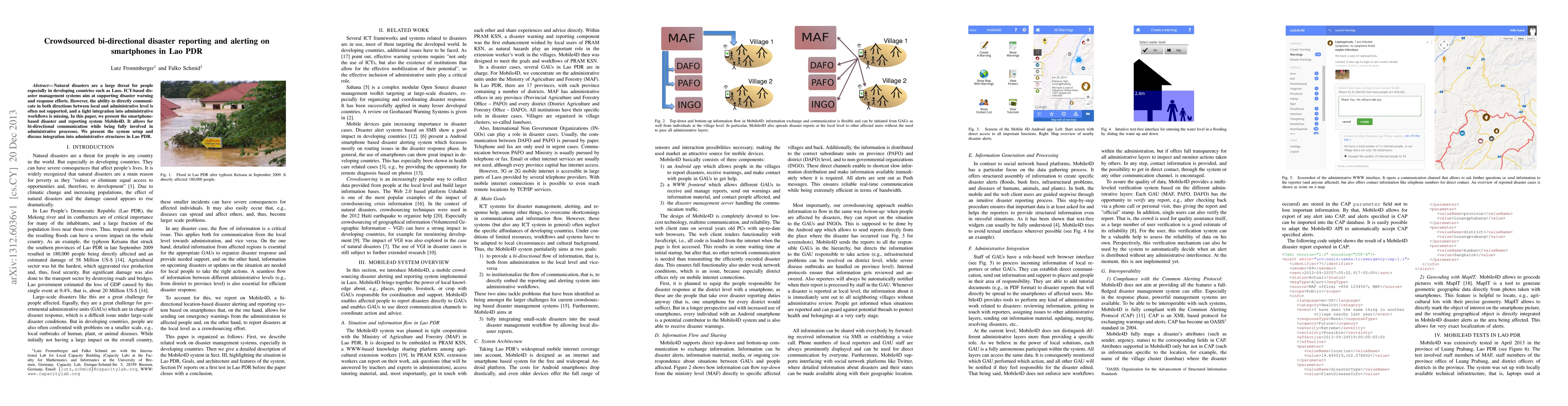 Natural disasters are a large threat for people especially in developing countries such as Laos. ICT-based disaster management systems aim at supporting disaster warning and response efforts. However, the ability to directly communicate in both directions between local and administrative level is often not supported, and a tight integration into administrative workflows is missing. In this paper, we present the smartphone-based disaster and reporting system Mobile4D. It allows for bi-directional communication while being fully involved in administrative processes. We present the system setup and discuss integration into administrative structures in Lao PDR.