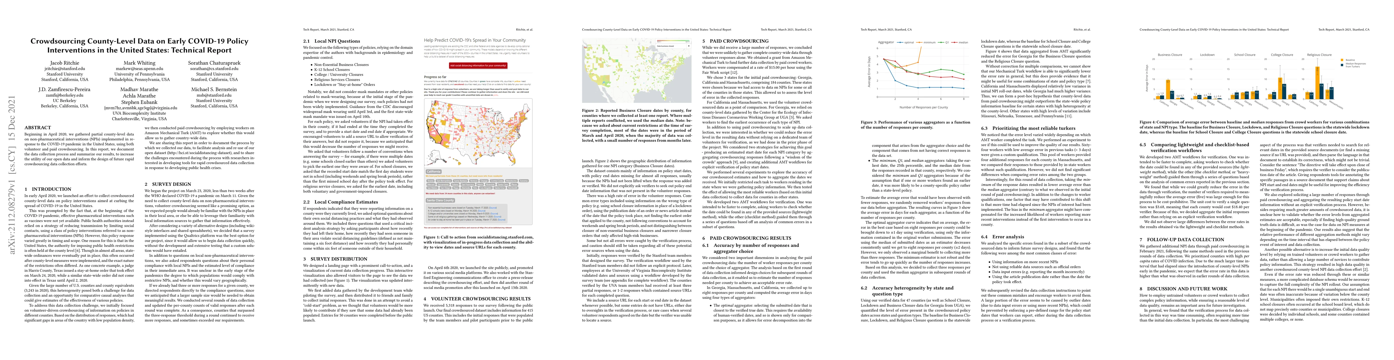 This report details the crowdsourcing process to collect county-level data on early COVID-19 non-pharmaceutical interventions in the U.S., using both volunteer and paid contributors, aiming to enhance data utility and inform future rapid data collection initiatives.