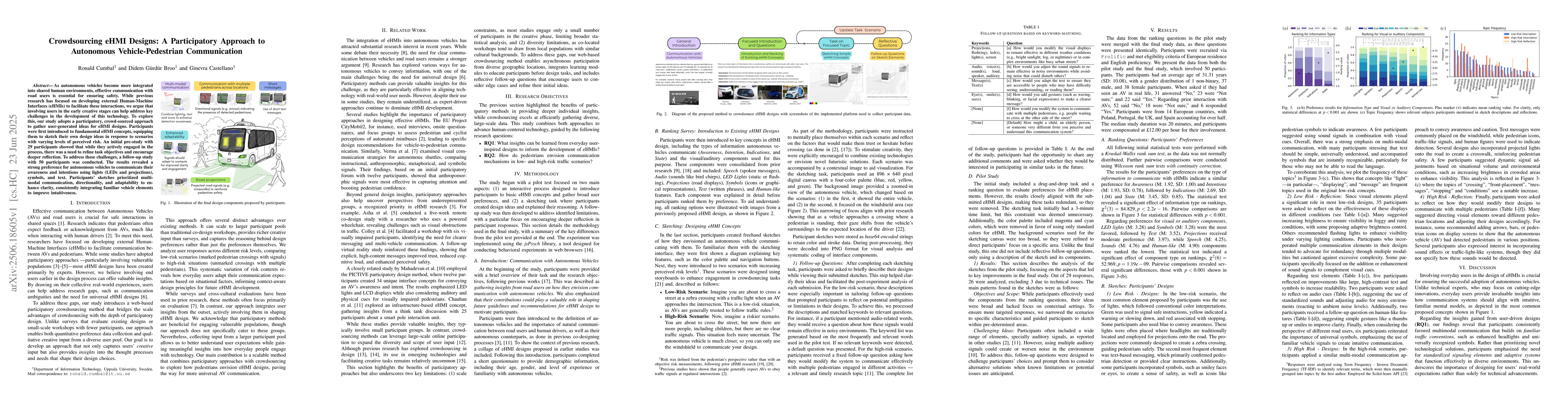 As autonomous vehicles become more integrated into shared human environments, effective communication with road users is essential for ensuring safety. While previous research has focused on developing external Human-Machine Interfaces (eHMIs) to facilitate these interactions, we argue that involving users in the early creative stages can help address key challenges in the development of this technology. To explore this, our study adopts a participatory, crowd-sourced approach to gather user-generated ideas for eHMI designs. Participants were first introduced to fundamental eHMI concepts, equipping them to sketch their own design ideas in response to scenarios with varying levels of perceived risk. An initial pre-study with 29 participants showed that while they actively engaged in the process, there was a need to refine task objectives and encourage deeper reflection. To address these challenges, a follow-up study with 50 participants was conducted. The results revealed a strong preference for autonomous vehicles to communicate their awareness and intentions using lights (LEDs and projections), symbols, and text. Participants' sketches prioritized multi-modal communication, directionality, and adaptability to enhance clarity, consistently integrating familiar vehicle elements to improve intuitiveness.