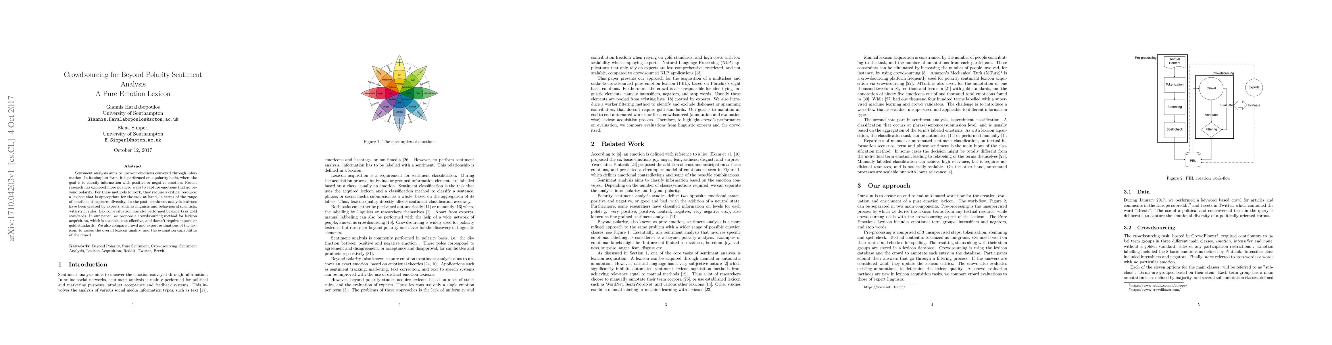 This paper proposes a crowdsourcing method for creating a lexicon to capture emotions beyond polarity in sentiment analysis, emphasizing scalability and cost-effectiveness. It compares crowdsourced and expert evaluations to assess the lexicon's quality and crowd evaluation capabilities.