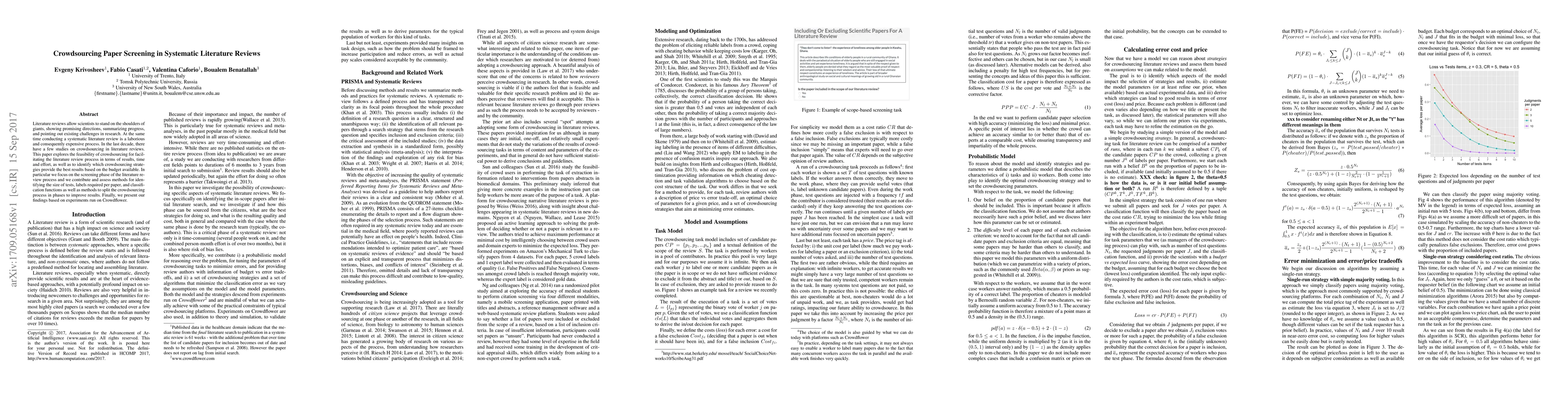 This paper investigates the use of crowdsourcing to streamline the screening phase of systematic literature reviews, assessing its feasibility in terms of outcomes, time, and cost. It proposes methods for determining optimal test sizes, labeling requirements, and classification functions, and evaluates different crowdsourcing strategies to maximize efficiency within budget constraints, based on experiments conducted on Crowdflower.