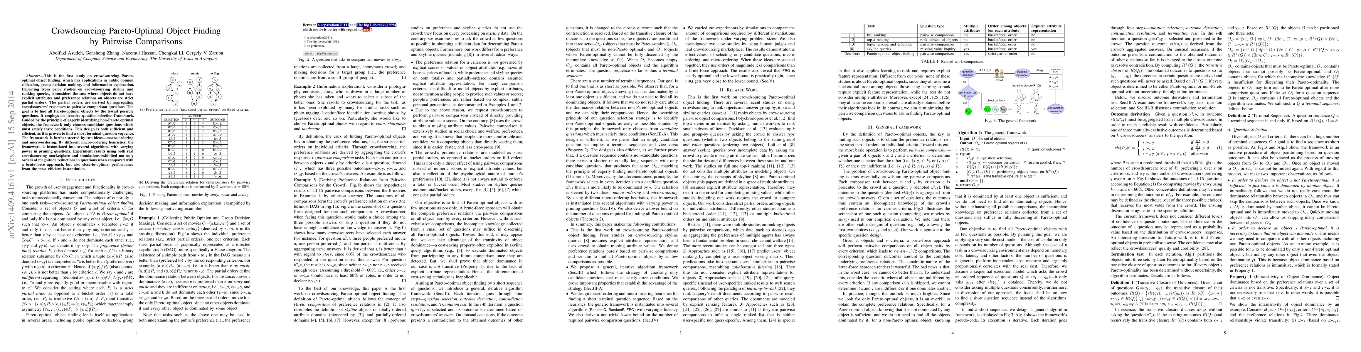 This study introduces a framework for crowdsourcing Pareto-optimal object finding using pairwise comparisons, achieving significant reductions in questions compared to brute-force approaches.