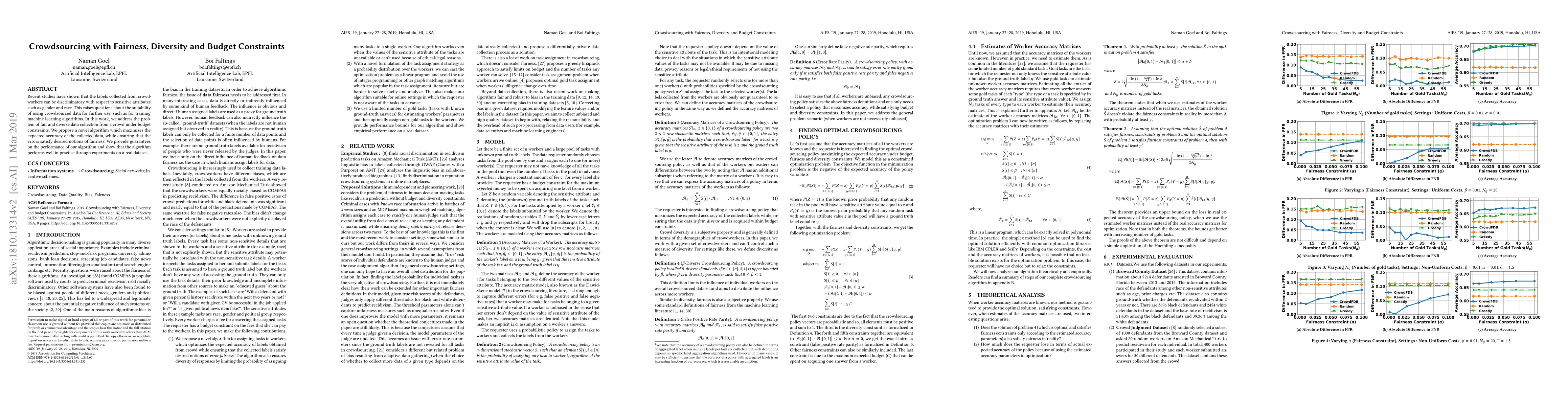 Recent studies have shown that the labels collected from crowdworkers can be discriminatory with respect to sensitive attributes such as gender and race. This raises questions about the suitability of using crowdsourced data for further use, such as for training machine learning algorithms. In this work, we address the problem of fair and diverse data collection from a crowd under budget constraints. We propose a novel algorithm which maximizes the expected accuracy of the collected data, while ensuring that the errors satisfy desired notions of fairness. We provide guarantees on the performance of our algorithm and show that the algorithm performs well in practice through experiments on a real dataset.