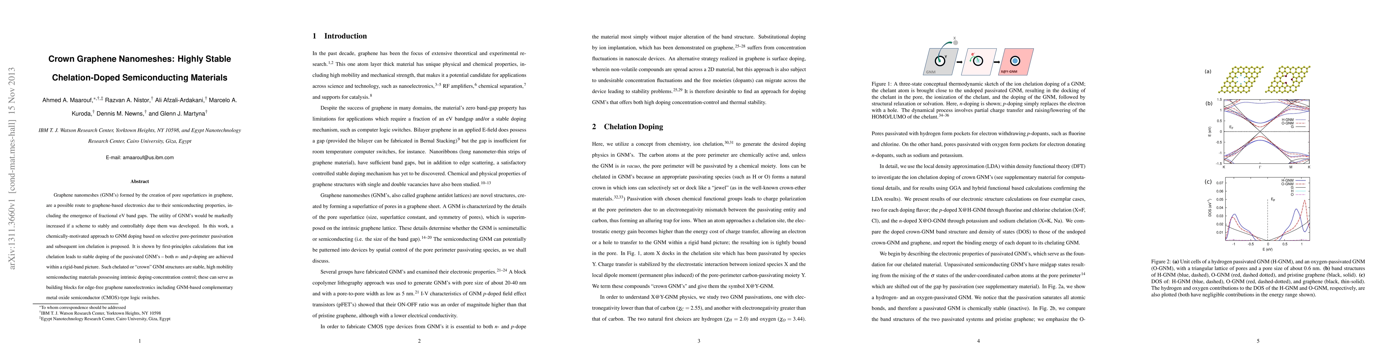 This paper proposes a method for creating stable chelation-doped graphene nanomeshes (GNM) using ion chelation for n- and p-type doping, demonstrating their potential as high mobility semiconducting materials for graphene nanoelectronics, including CMOS-type logic switches. The approach achieves intrinsic doping-concentration control and maintains material stability.