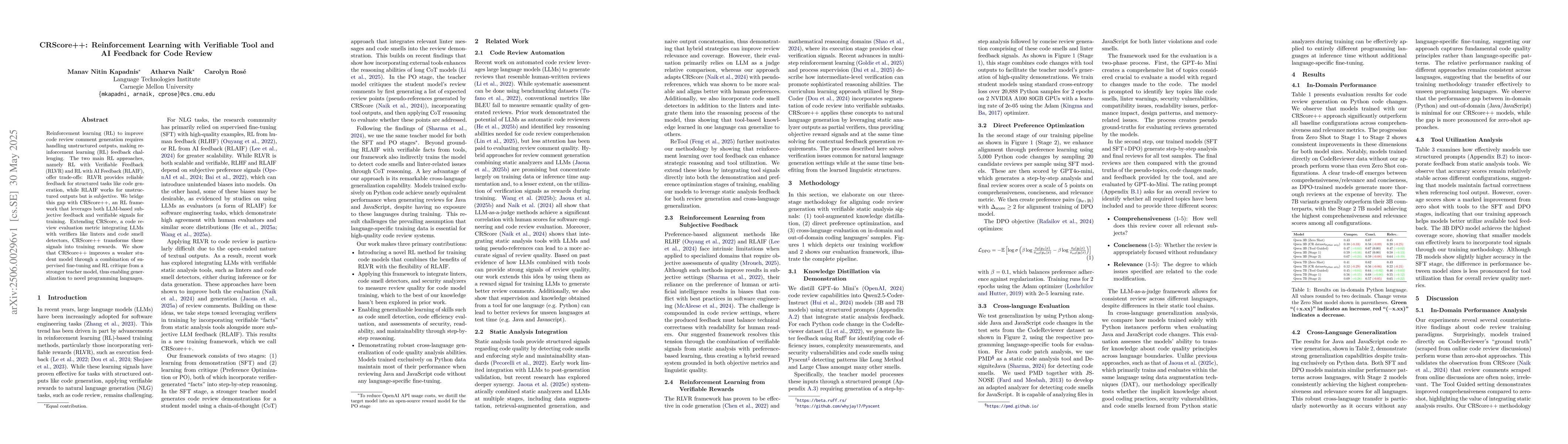 A new reinforcement learning framework called CRScore++ improves code review comment generation by combining verifiable feedback with AI-generated subjective feedback, enabling better generalization to novel programming languages.