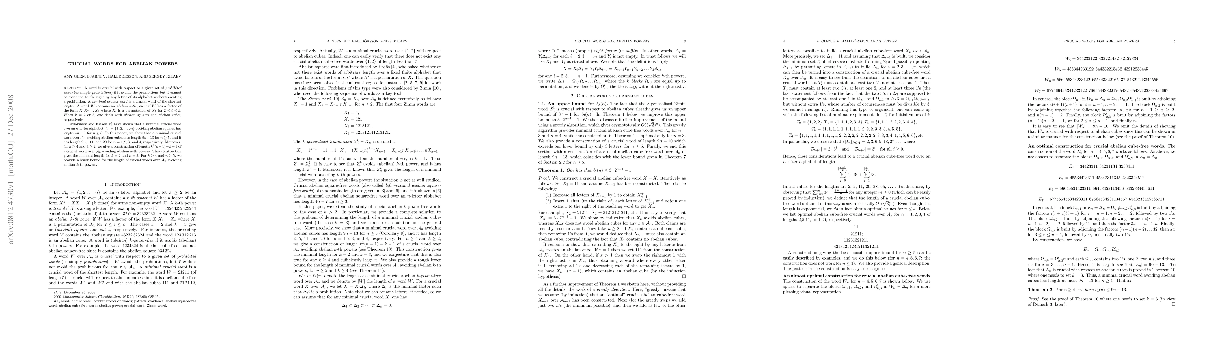 This paper investigates minimal crucial words that avoid abelian k-th powers for various k values. It establishes that minimal crucial words avoiding abelian cubes have lengths 9n-13 for n >= 5, and provides specific lengths for n=1 to 4, along with a construction for avoiding higher abelian powers.