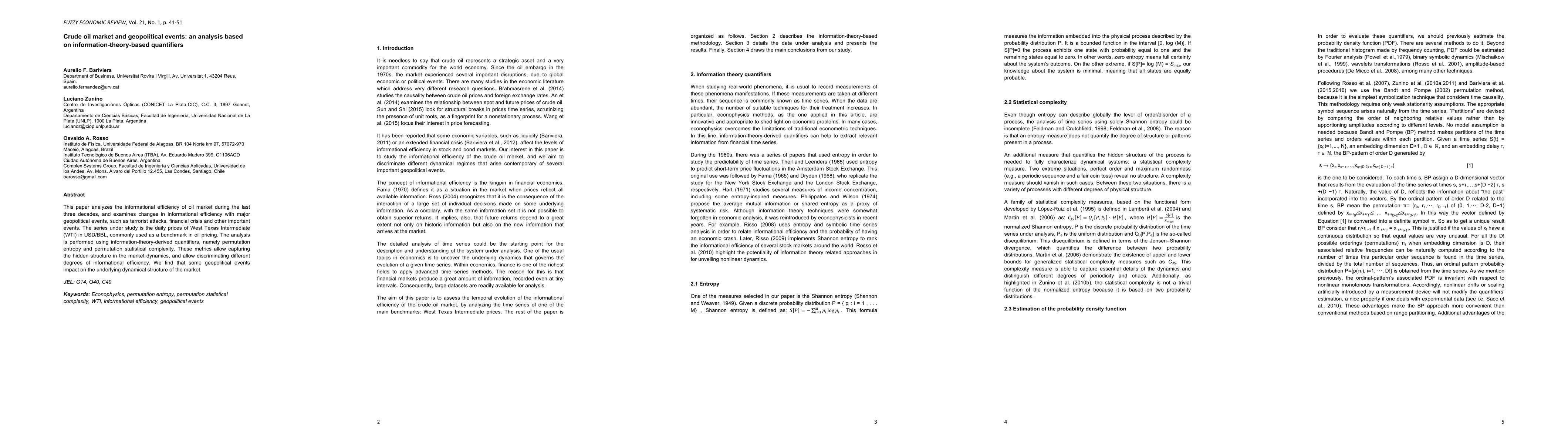 This paper analyzes oil market prices over 30 years using information-theory metrics to see how geopolitical events affect market efficiency.