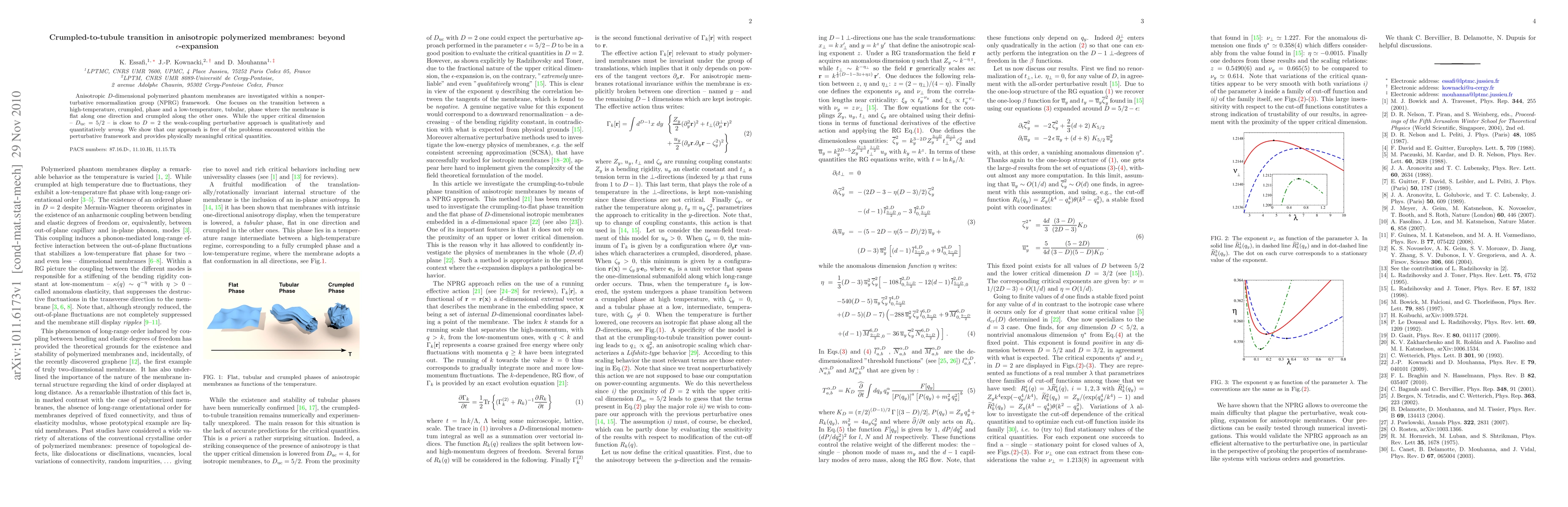 This paper investigates the transition in anisotropic polymerized membranes from a crumpled to a tubular phase using a nonperturbative renormalization group approach, finding that the upper critical dimension is close to 5/2, and demonstrating that this method provides accurate critical quantities beyond the limitations of traditional perturbative methods.