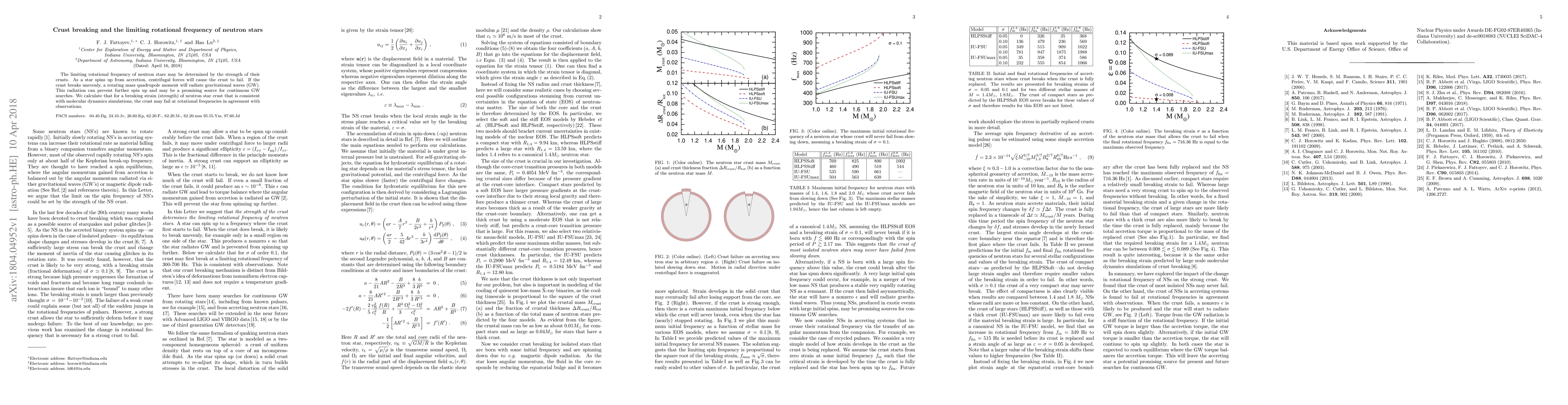 This paper investigates how the breaking of a neutron star's crust due to centrifugal forces during spin-up influences its limiting rotational frequency. It concludes that uneven crust failure can generate gravitational waves, potentially serving as a source for continuous gravitational wave searches.