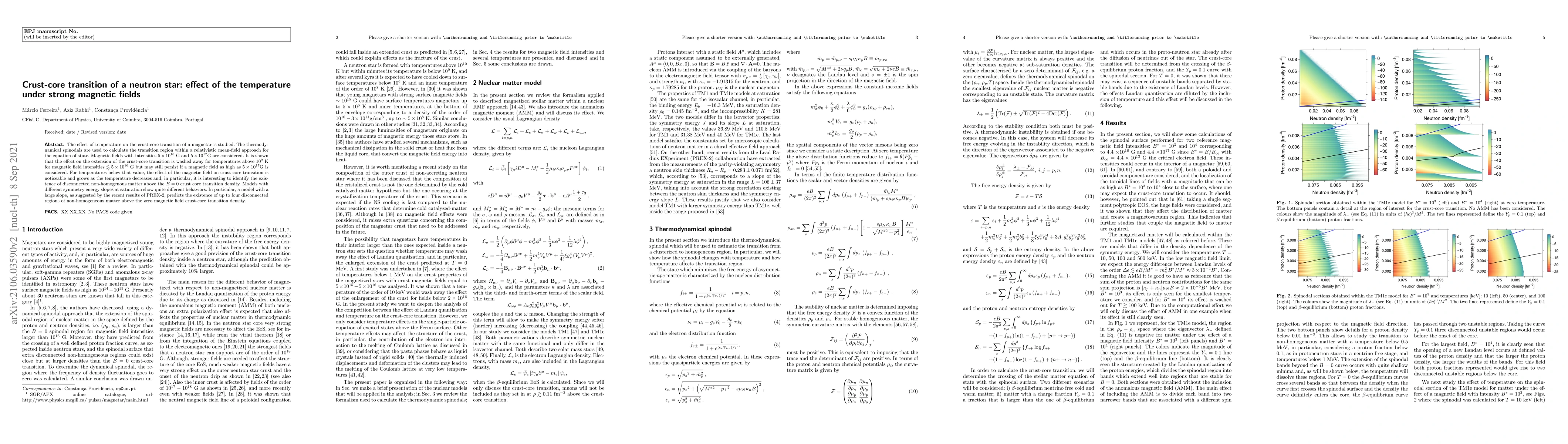 Research studies the effect of temperature on crust-core transitions in neutron stars under strong magnetic fields, finding that above 10^9 K, temperatures may wash away the effect of magnetic fields, but below this value, effects persist and grow as temperature decreases.