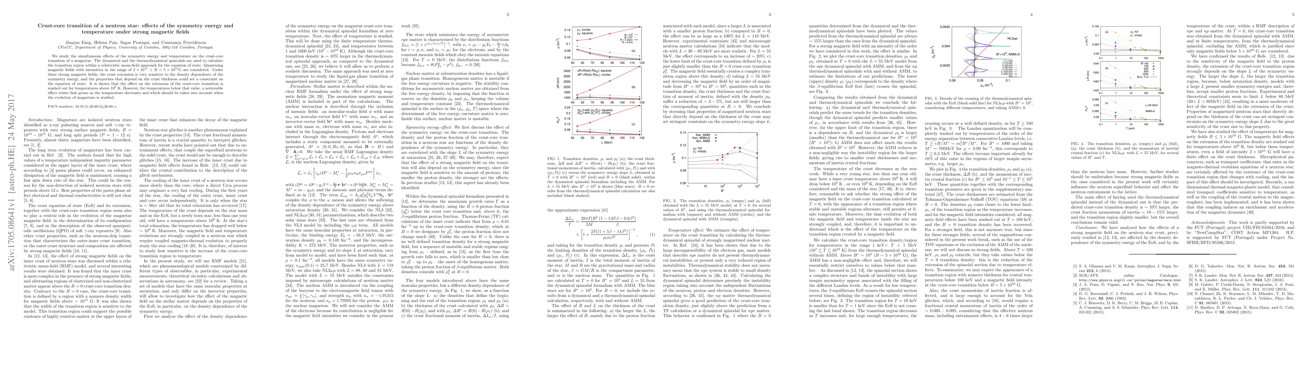 Research on neutron stars with strong magnetic fields shows that temperature affects crust-core transition, with significant impact at low temperatures (< $10^9$ K) and sensitivity to symmetry energy density.