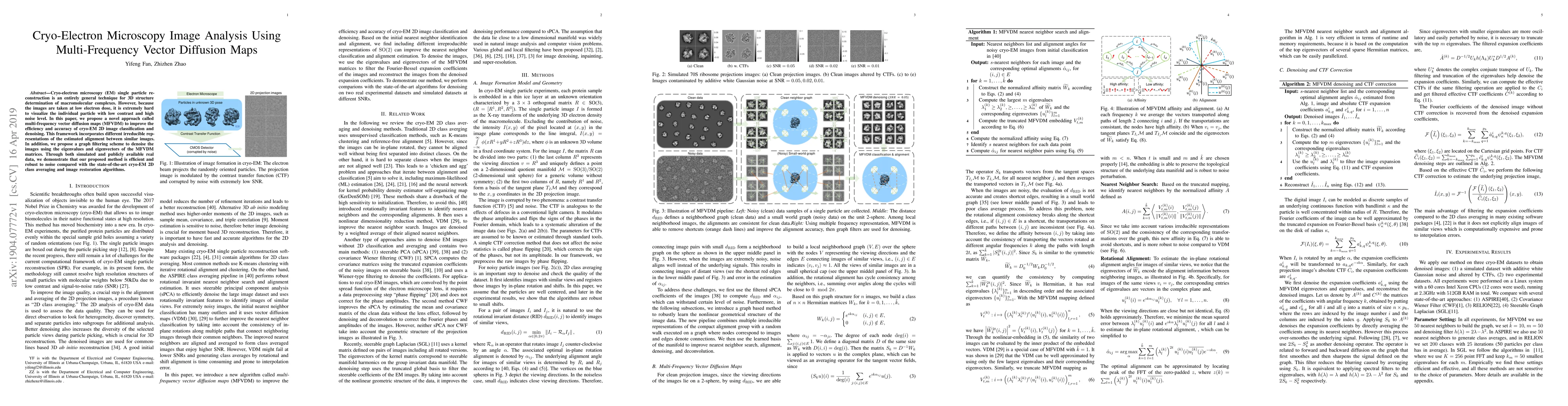 This paper proposes a novel method called multi-frequency vector diffusion maps (MFVDM) to enhance the classification and denoising of low-contrast, noisy cryo-electron microscopy (EM) images. The method uses graph filtering based on MFVDM matrices to achieve superior denoising performance compared to existing algorithms.