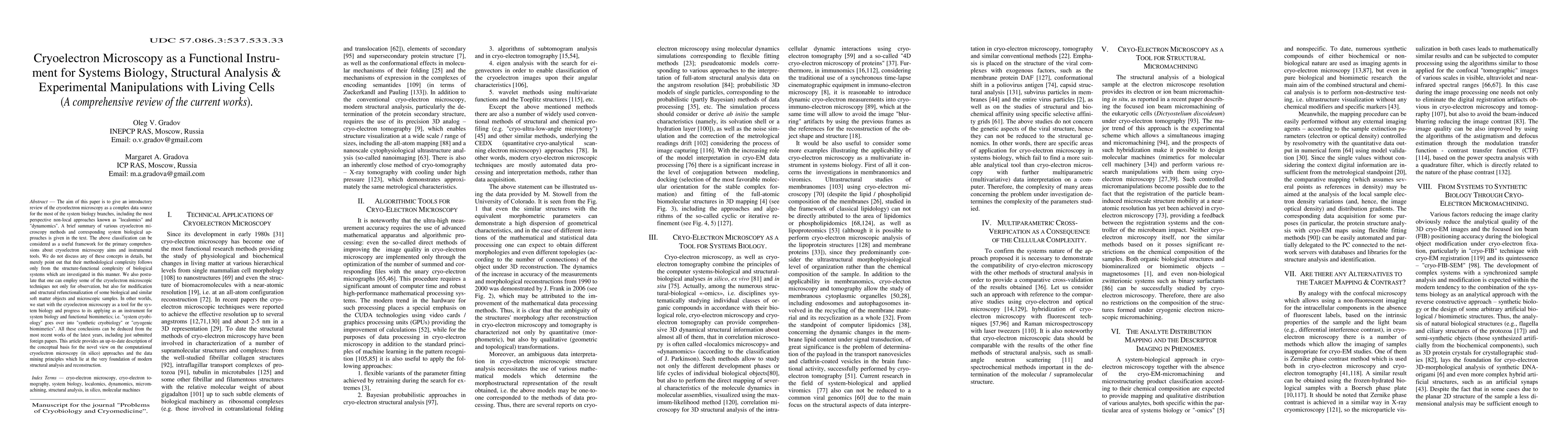 The aim of this paper is to give an introductory review of the cryoelectron microscopy as a complex data source for the most of the system biology branches, including the most perspective non-local approaches known as "localomics" and "dynamomics". A brief summary of various cryoelectron mi-croscopy methods and corresponding system biological ap-proaches is given in the text. The above classification can be considered as a useful framework for the primary comprehen-sions about cryoelectron microscopy aims and instrumental tools. We do not discuss any of these concepts in details, but merely point out that their methodological complexity follows only from the structure-functional complexity of biological systems which are investigated in this manner. We also postu-late that one can employ some of the cryoelectron microscopic techniques not only for observation, but also for modification and structural refunctionalization of some biological and similar soft matter objects and microscopic samples. In other worlds, we start with the cryoelectron microscopy as a tool for the sys-tem biology and progress to its applying as an instrument for system biology and functional biomimetics; i.e. "system cryobi-ology" goes over into "synthetic cryobiology" or "cryogenic biomimetics". All these conclusions can be deduced from the most recent works of the latest years, including just submitted foreign papers. This article provides an up-to-date description of the conceptual basis for the novel view on the computational cryoelectron microscopy (in silico) approaches and the data mining principles which lie at the very foundation of modern structural analysis and reconstruction.