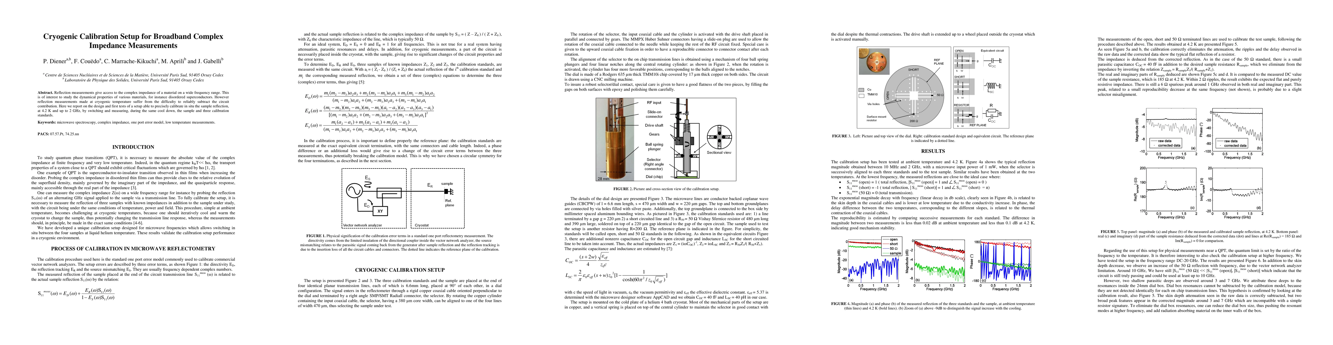 Reflection measurements give access to the complex impedance of a material on a wide frequency range. This is of interest to study the dynamical properties of various materials, for instance disordered superconductors. However reflection measurements made at cryogenic temperature suffer from the difficulty to reliably subtract the circuit contribution. Here we report on the design and first tests of a setup able to precisely calibrate in situ the sample reflection, at 4.2 K and up to 2 GHz, by switching and measuring, during the same cool down, the sample and three calibration standards.
