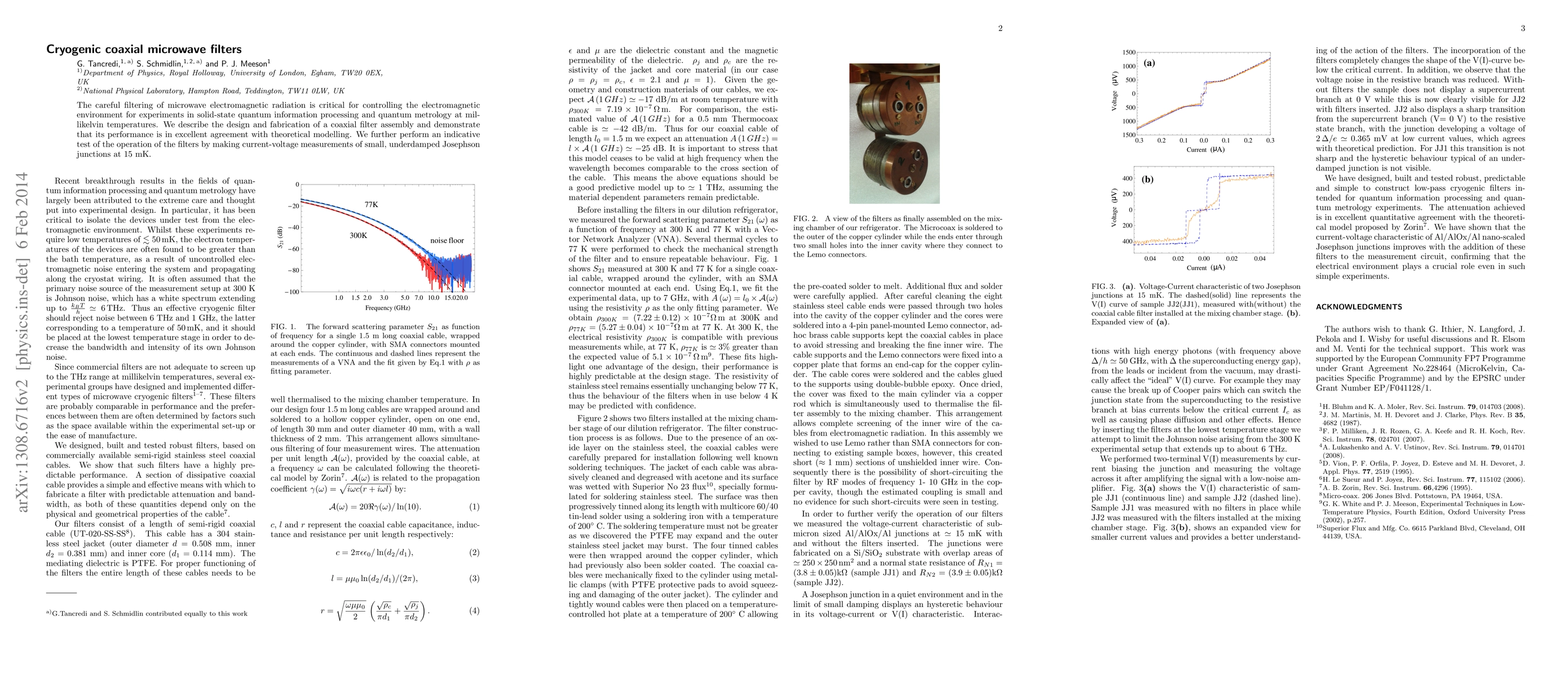 This work stands out by demonstrating the importance of the electrical environment even in seemingly simple experiments, and by providing a detailed design, fabrication, and testing process for cryogenic coaxial microwave filters.