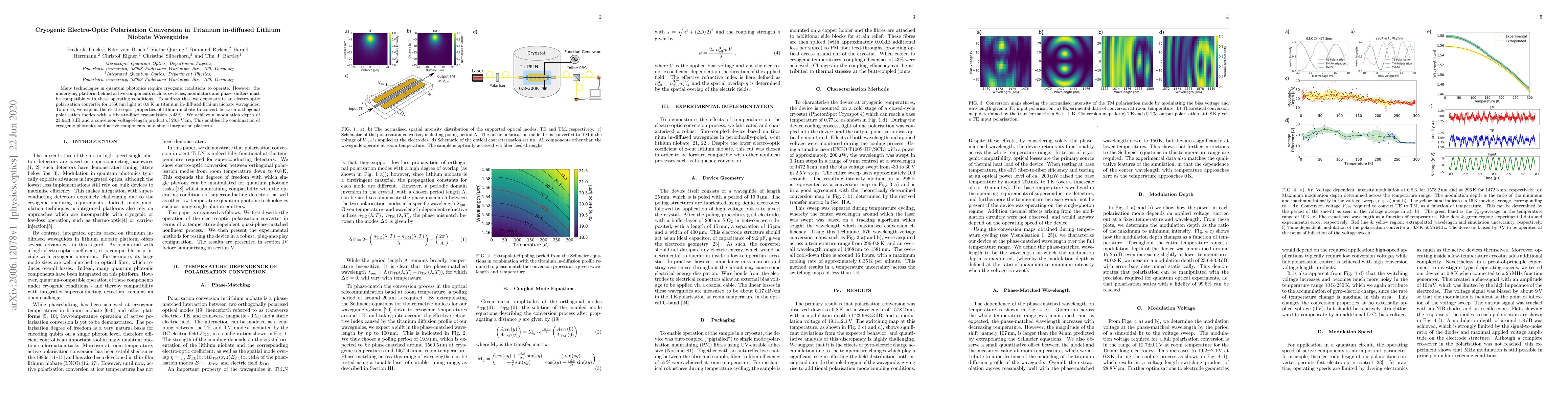 This paper demonstrates a cryogenic electro-optic polarisation converter in titanium in-diffused lithium niobate waveguides operating at 0.8K, achieving >43% transmission for 1550nm light with a modulation depth of 23.6 +/-3.3dB, enabling integration of active components in quantum photonics technologies.