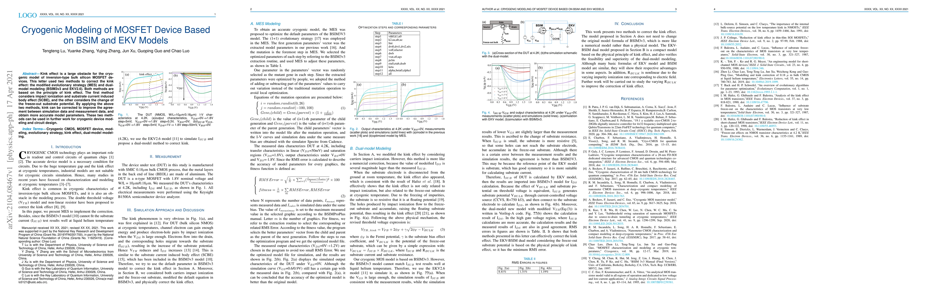 Researchers developed two methods to correct the kink effect in cryogenic MOSFET models, improving agreement between simulation and measurement data.