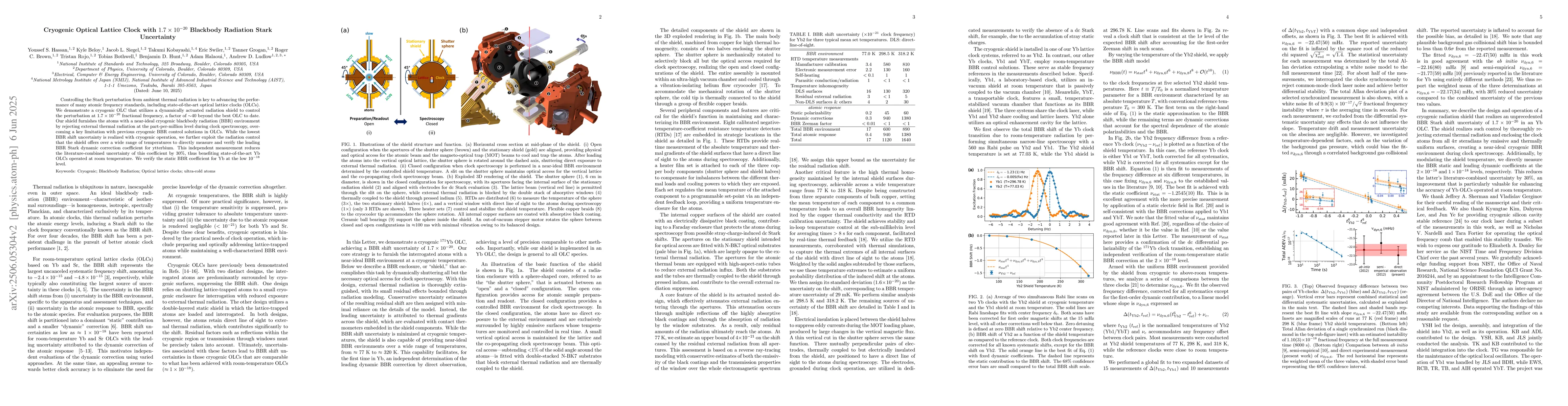 The research utilizes a cryogenic optical lattice clock (OLC) with a dynamically actuated radiation shield to control Stark perturbation from ambient thermal radiation.