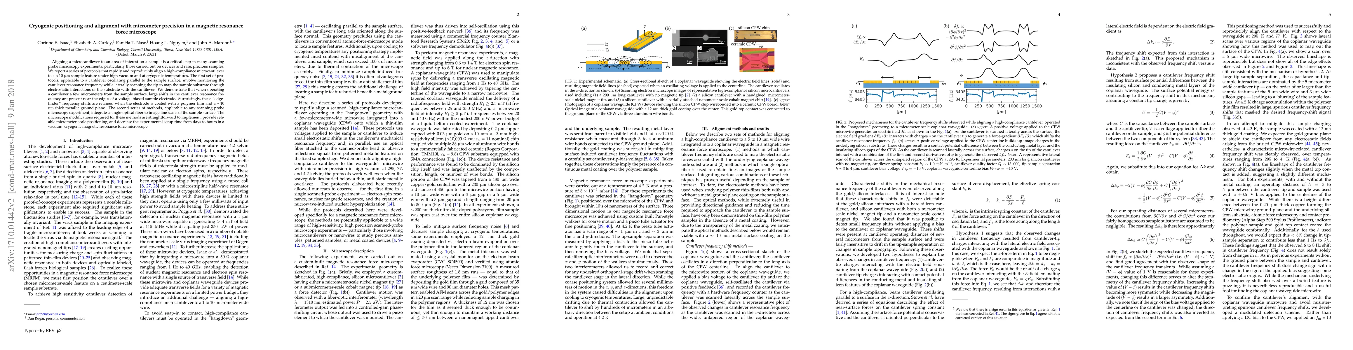 This paper presents protocols for cryogenically aligning microcantilevers with micrometer precision in scanning probe microscopy, utilizing resonance frequency monitoring and optical fiber imaging to achieve rapid and reproducible positioning under high vacuum conditions. The methods significantly reduce setup time from days to hours.