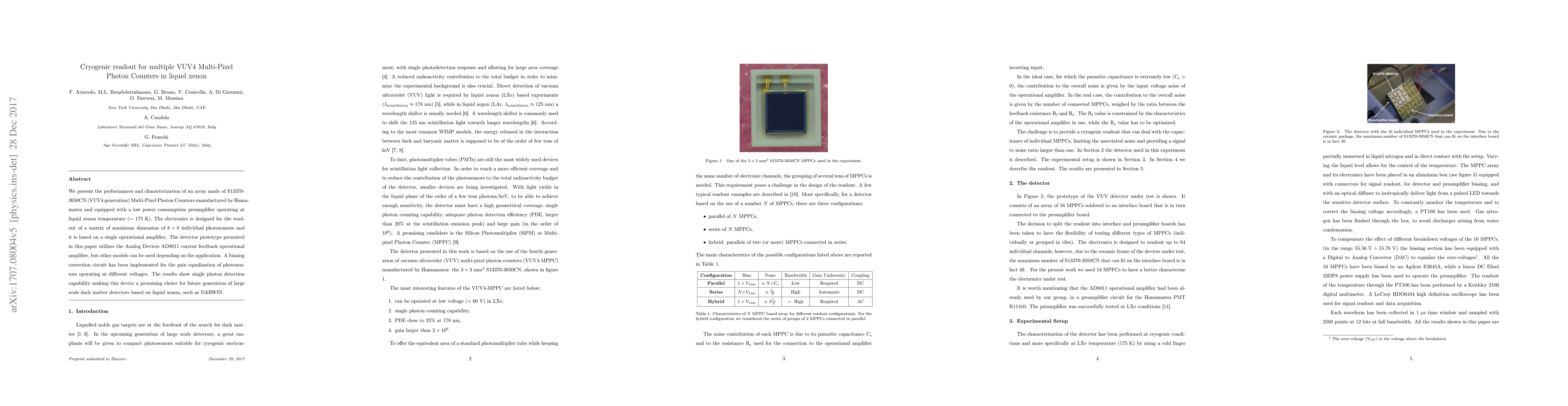 A cryogenic operational amplifier was used to amplify VUV light signals from individual MPPCs.