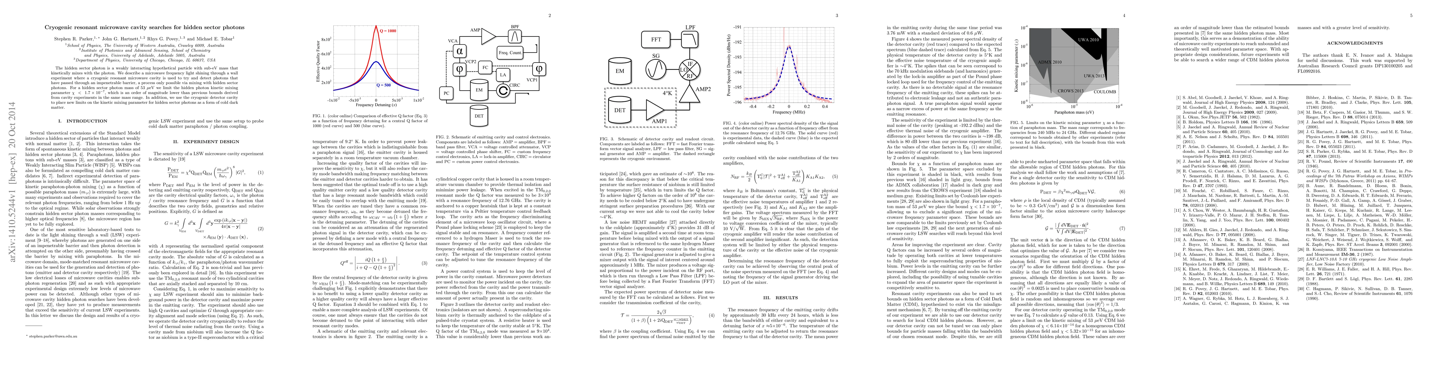 This paper details a cryogenic resonant microwave cavity experiment designed to detect hidden sector photons, which kinetically mix with ordinary photons. The study sets new limits on the kinetic mixing parameter, improving previous bounds by an order of magnitude for a hidden sector photon mass of 53 μeV.
