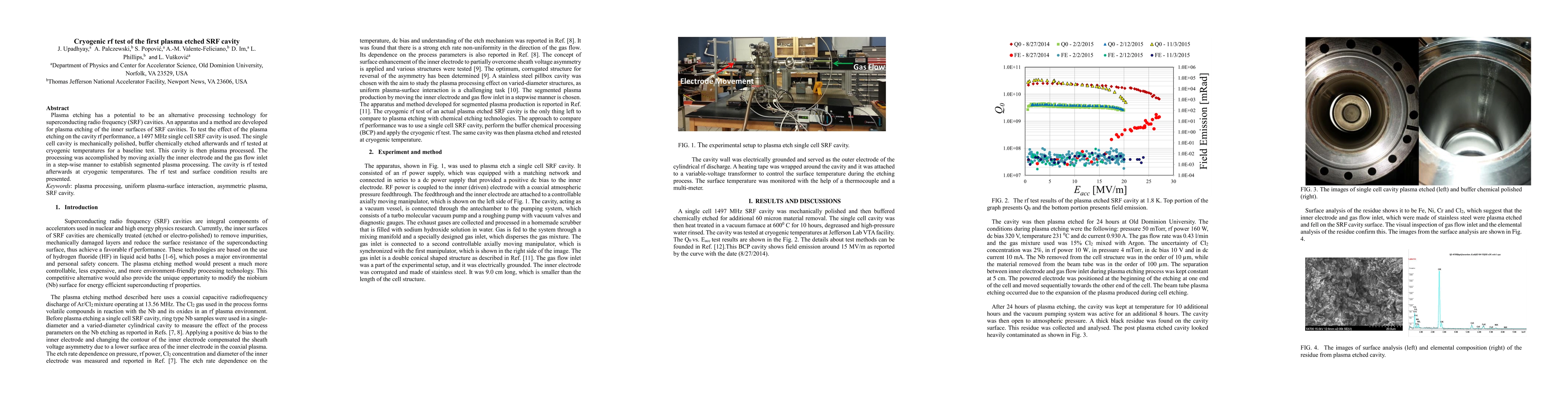 This paper investigates the impact of plasma etching on the RF performance of superconducting radio frequency (SRF) cavities by comparing mechanically polished and plasma-processed cavities tested at cryogenic temperatures. The results show the effectiveness and potential of plasma etching as an alternative processing method for SRF cavities.