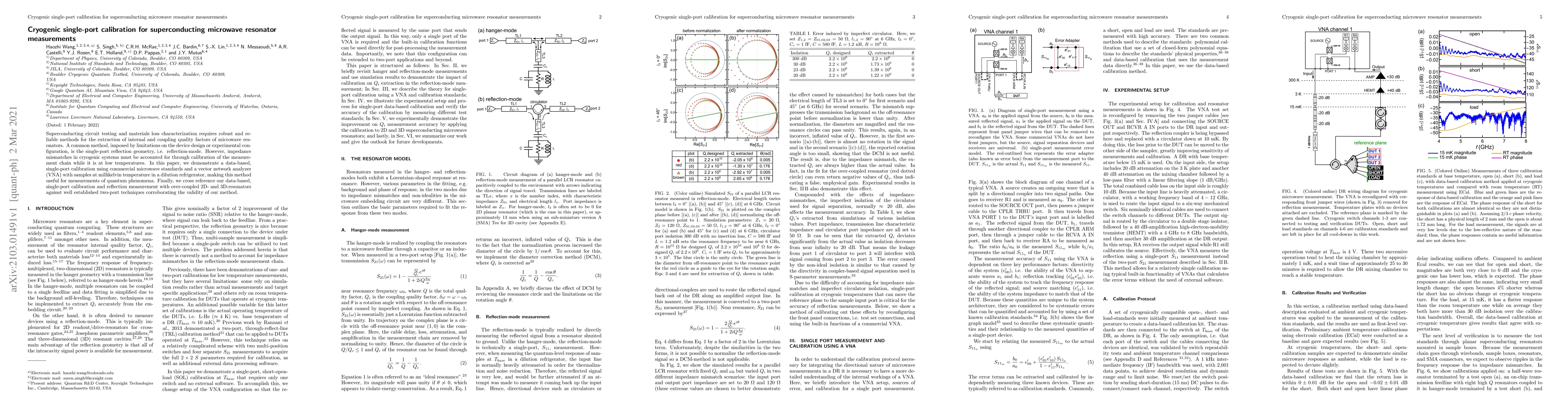 This paper presents a cryogenic single-port calibration method for measuring superconducting microwave resonators, using commercial standards and a vector network analyzer at millikelvin temperatures. The method is validated against two-port techniques with over-coupled resonators, confirming its reliability for quantum phenomena measurements.