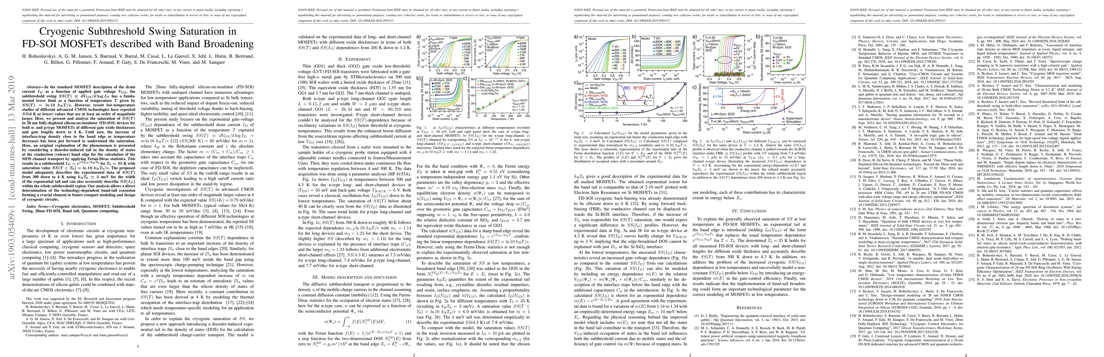 the saturation of $SS(T)$ in 28nm fully-depleted silicon-on-insulator (FD-SOI)