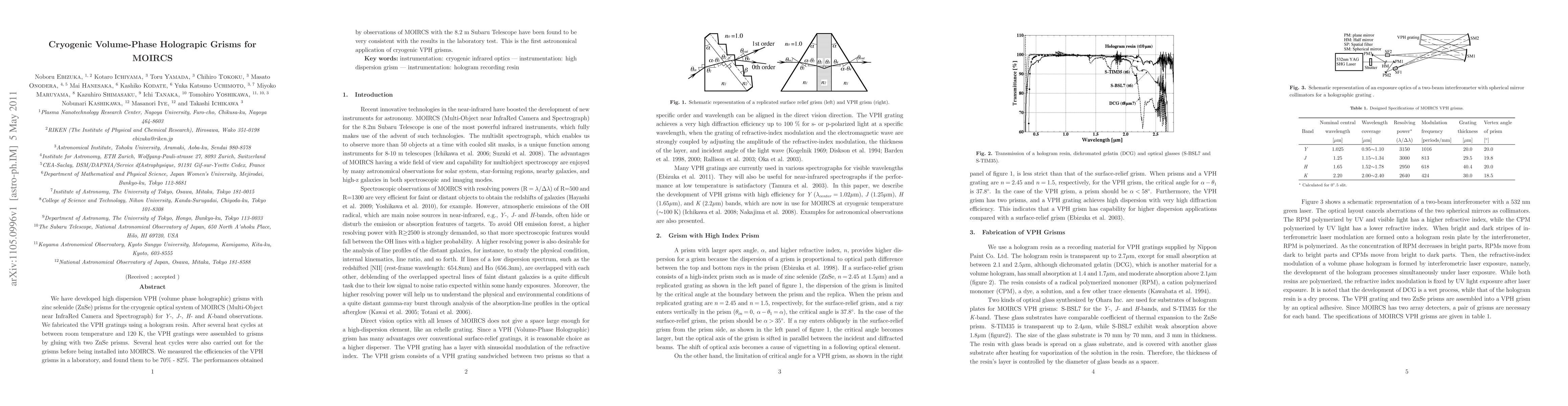 Researchers developed high dispersion VPH grisms for MOIRCS using zinc selenide prisms, achieving 70-82% efficiency in laboratory tests, with consistent performance observed during astronomical observations.