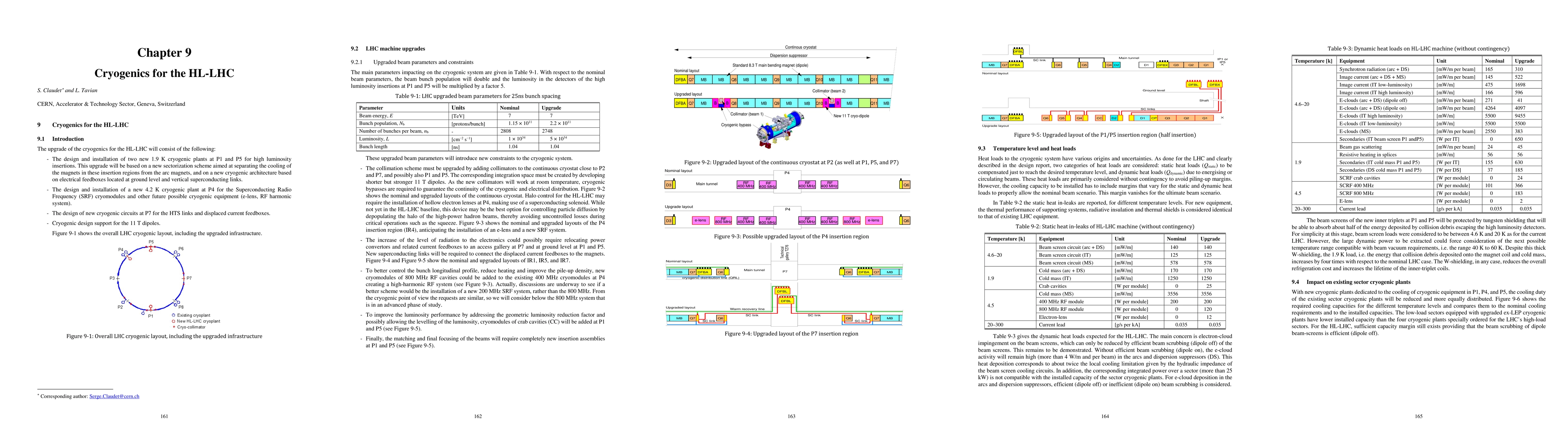 Chapter 9 in High-Luminosity Large Hadron Collider (HL-LHC) : Preliminary Design Report. The Large Hadron Collider (LHC) is one of the largest scientific instruments ever built. Since opening up a new energy frontier for exploration in 2010, it has gathered a global user community of about 7,000 scientists working in fundamental particle physics and the physics of hadronic matter at extreme temperature and density. To sustain and extend its discovery potential, the LHC will need a major upgrade in the 2020s. This will increase its luminosity (rate of collisions) by a factor of five beyond the original design value and the integrated luminosity (total collisions created) by a factor ten. The LHC is already a highly complex and exquisitely optimised machine so this upgrade must be carefully conceived and will require about ten years to implement. The new configuration, known as High Luminosity LHC (HL-LHC), will rely on a number of key innovations that push accelerator technology beyond its present limits. Among these are cutting-edge 11-12 tesla superconducting magnets, compact superconducting cavities for beam rotation with ultra-precise phase control, new technology and physical processes for beam collimation and 300 metre-long high-power superconducting links with negligible energy dissipation. The present document describes the technologies and components that will be used to realise the project and is intended to serve as the basis for the detailed engineering design of HL-LHC.